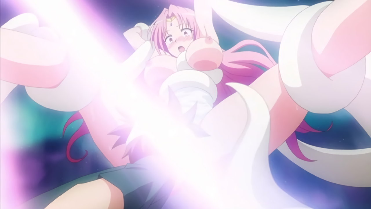 ナース服が破れて半裸状態となり、医療ロボットに緊縛されるティアーユ。