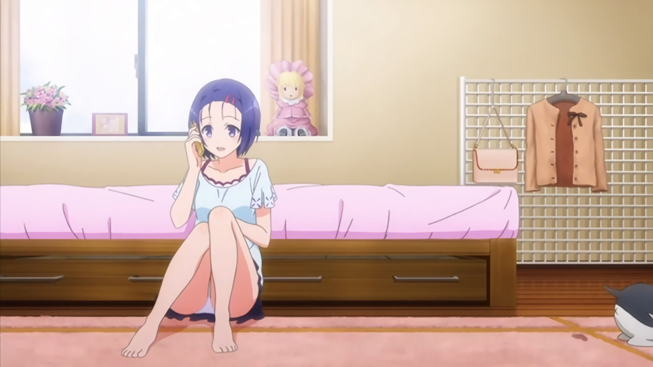 パンチラしながら電話する春菜。