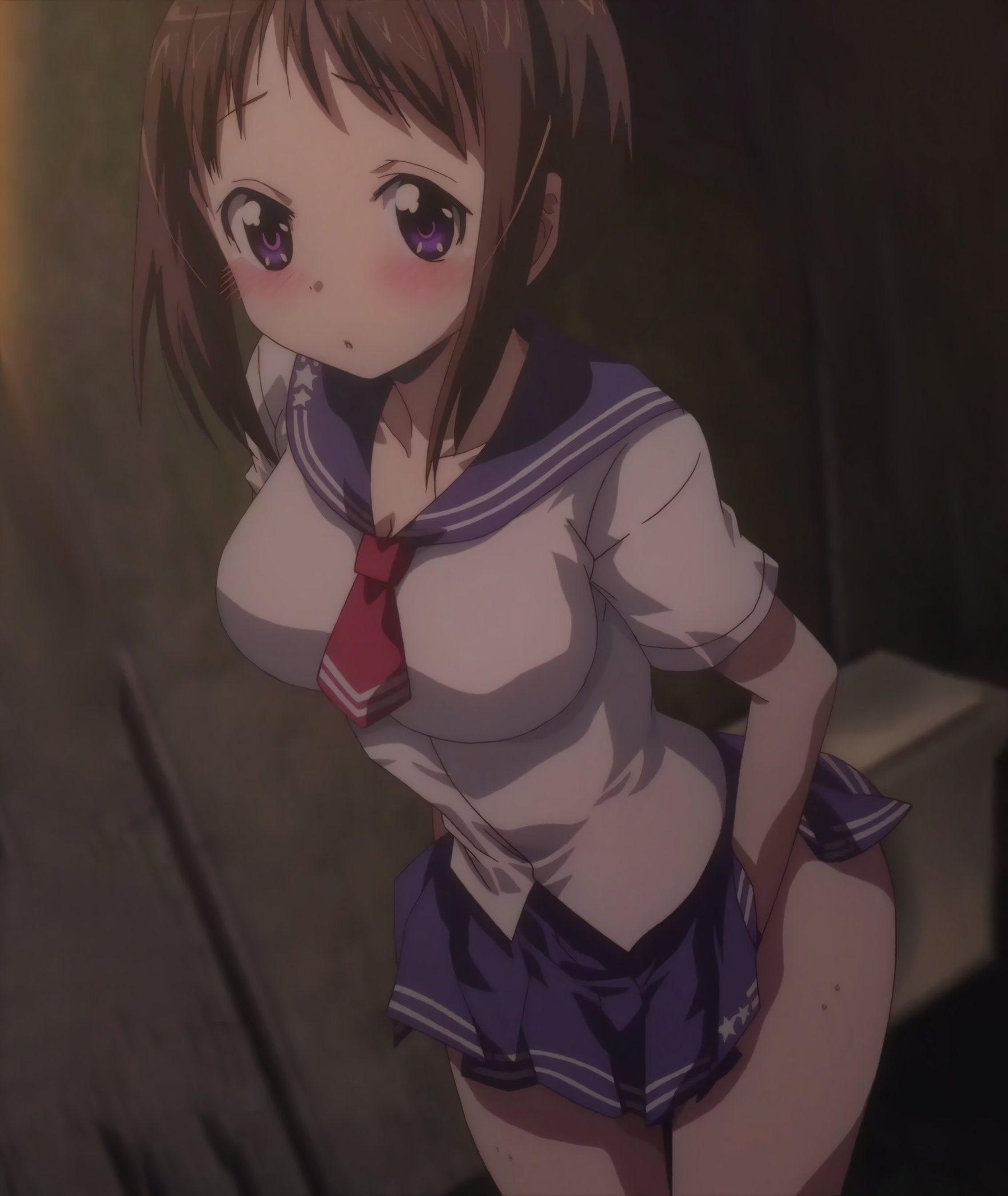 制服のスカートを脱ぎ、パンツ丸出しになる羽衣。