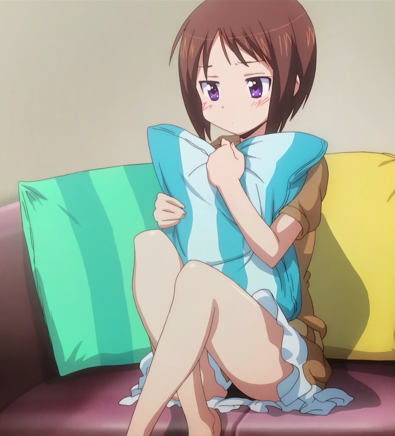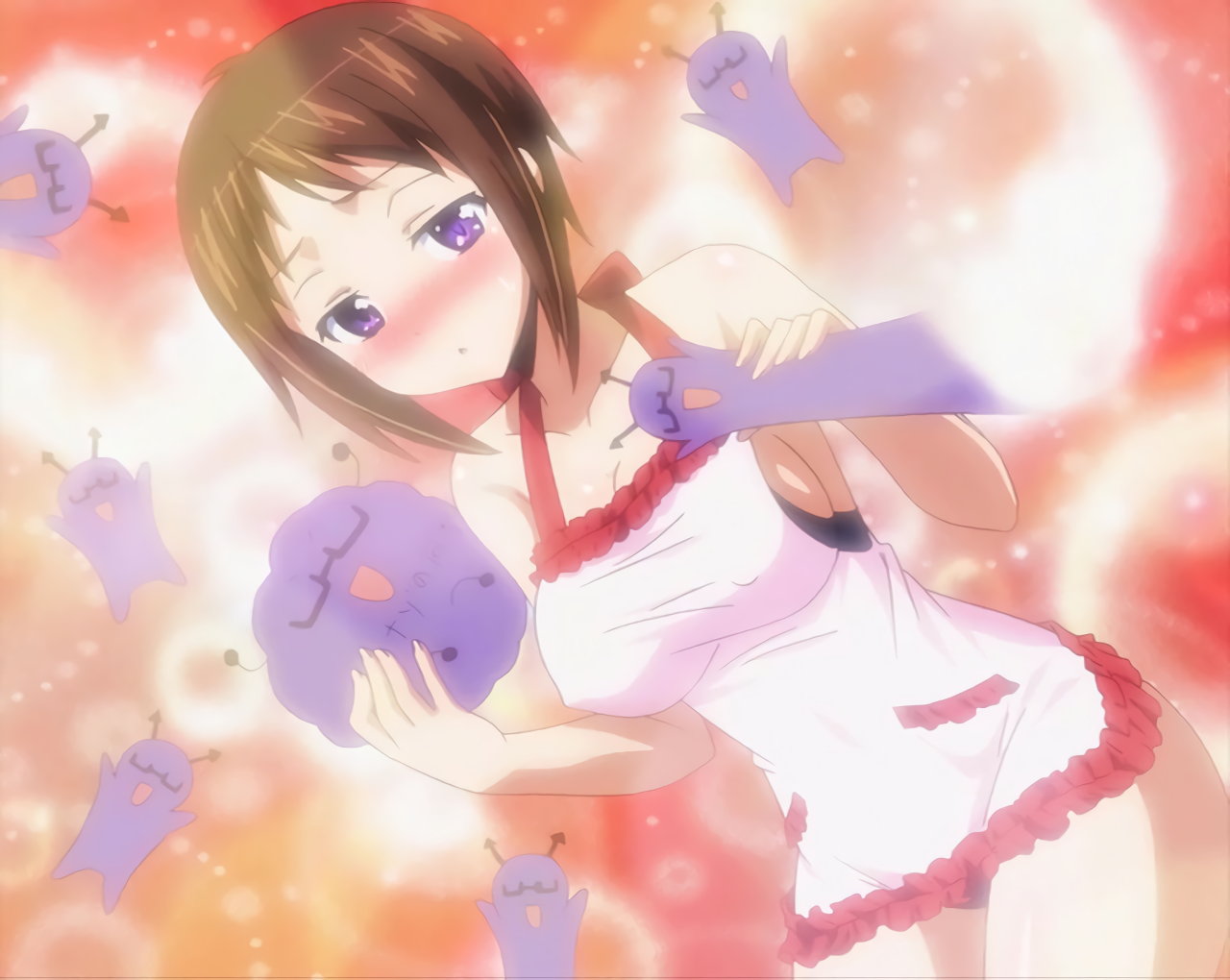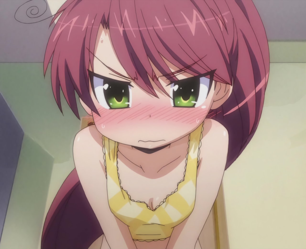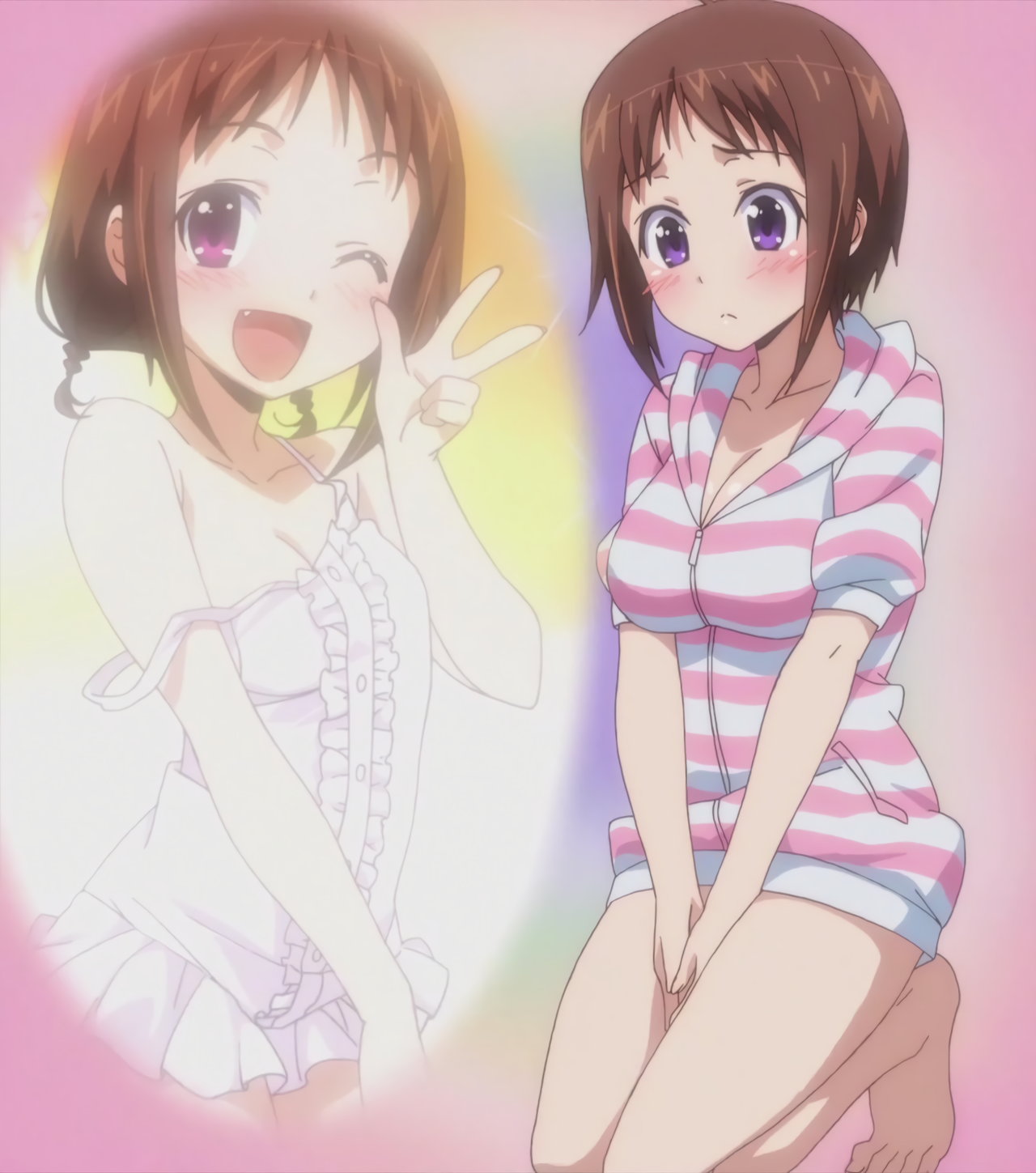 寝間着姿の羽衣。上衣が開けて胸の谷間が見え、下半身はパンツだけのエロい格好をしている。