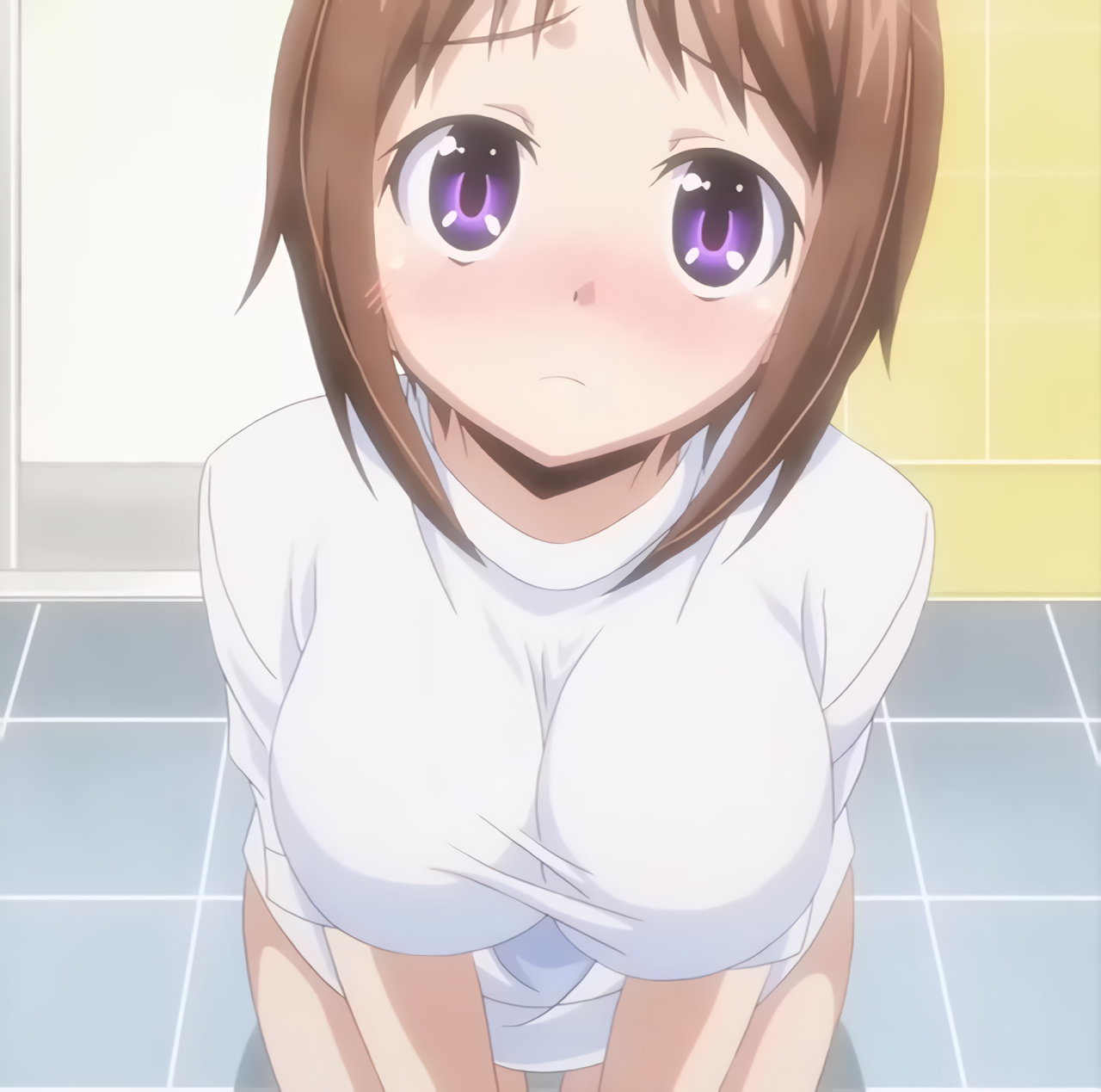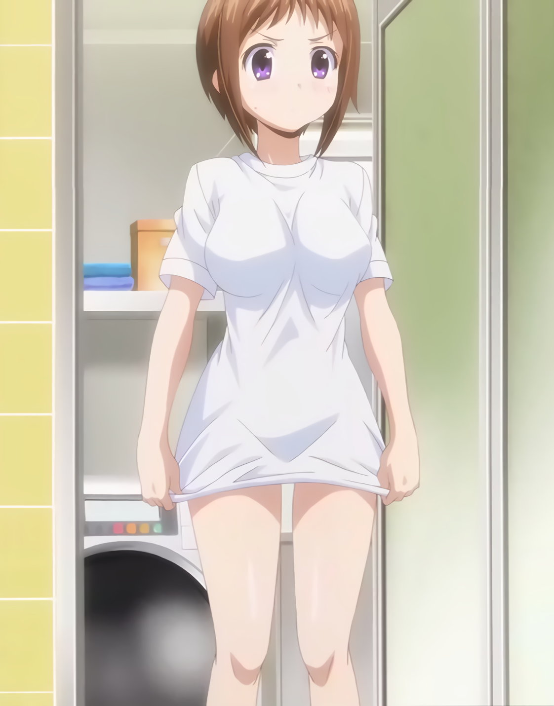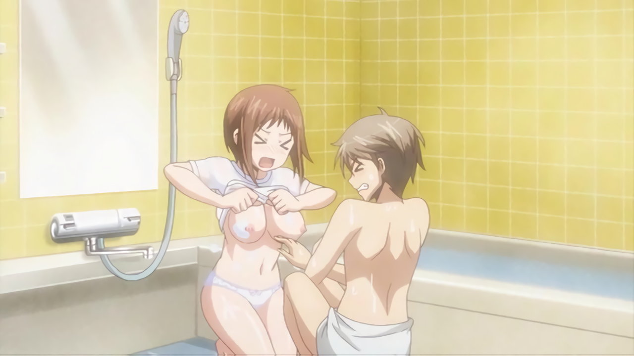 裸Tシャツ(下半身パンツ)姿で風呂場に入る羽衣。隼斗への洗体プレイを申し出る。