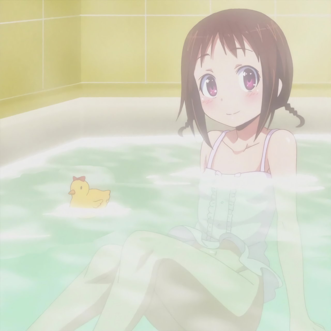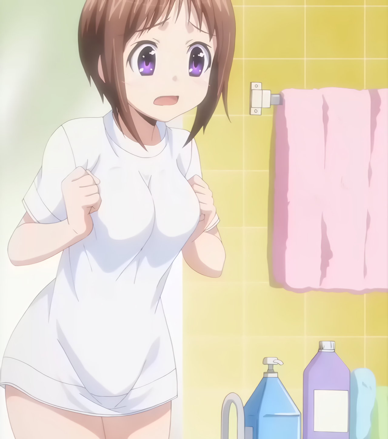 キャミソール姿で着衣入浴するみさと。