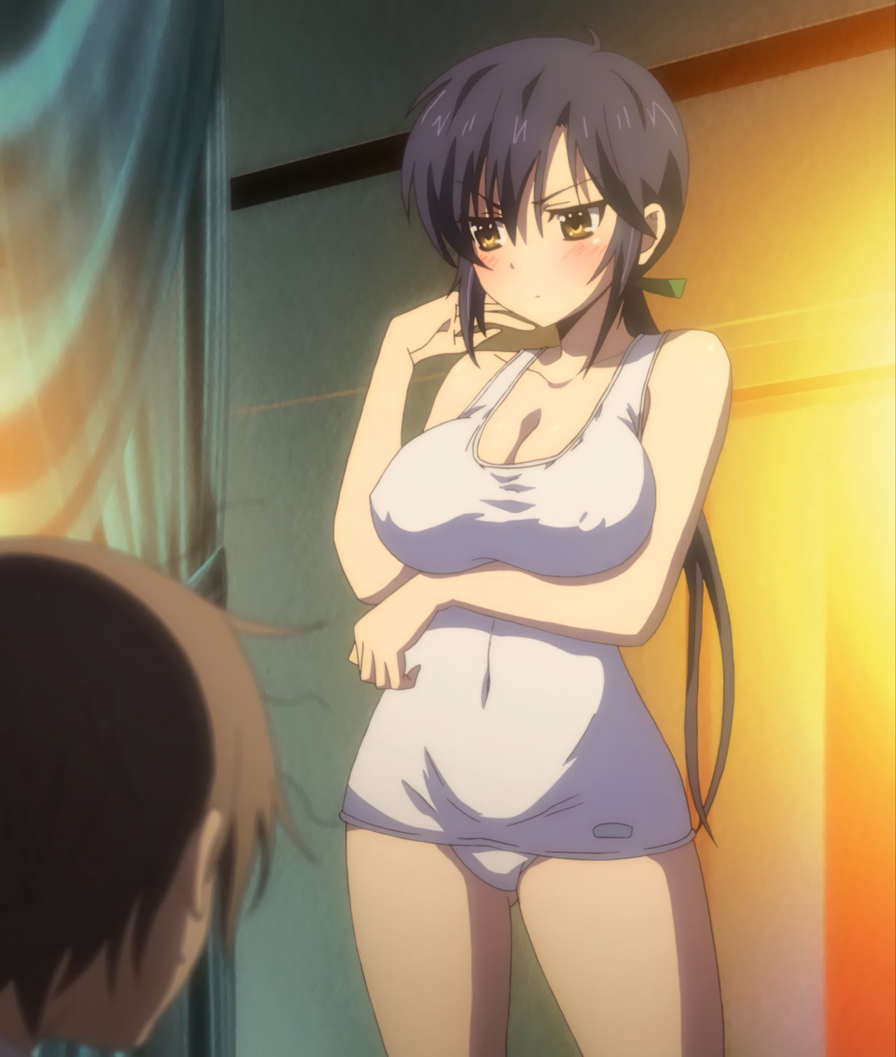 白スクール水着姿の倫。