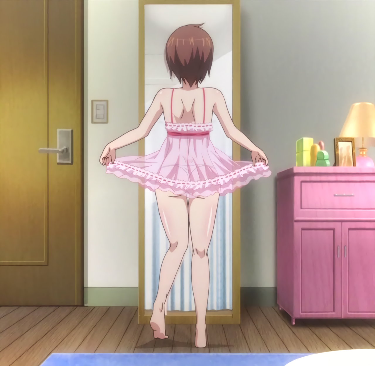隼斗から贈られた、透けパン・透け乳首仕様のエロいベビードールを着る羽衣。