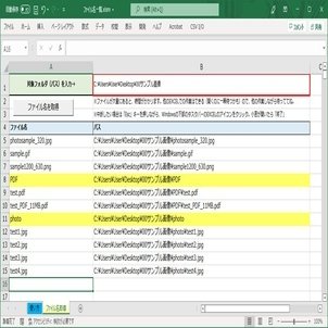 フォルダ内のファイル名の一覧表を作成する