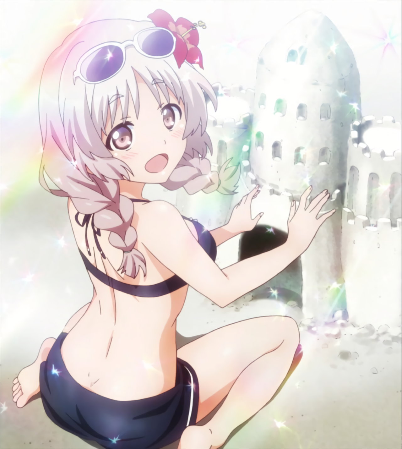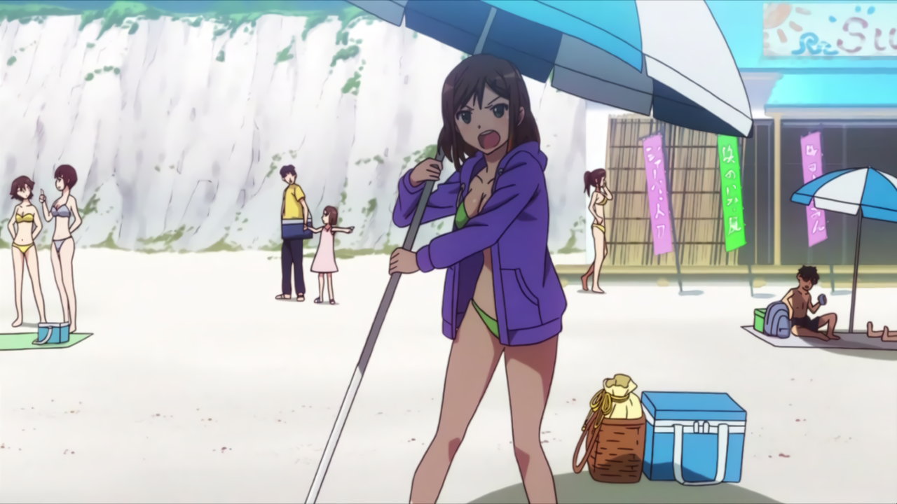 水着姿の灯代、鳩子、彩弓、千冬。