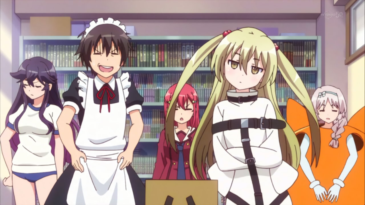 拘束衣を着た千冬。犯罪臭が強すぎる格好のため、即座に寿来が止めさせる。