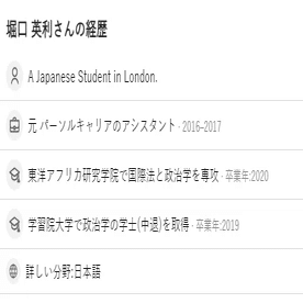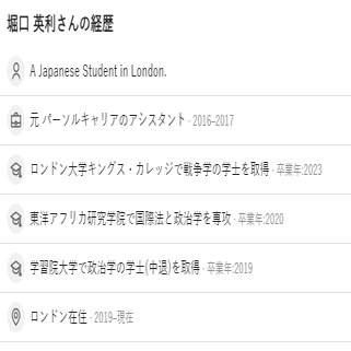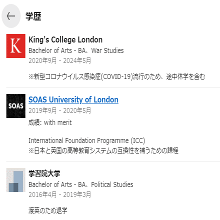 ※ 2024年4月3日、Quora記載の経歴からロンドン大学キングス・カレッジのが削除されたのを確認した。