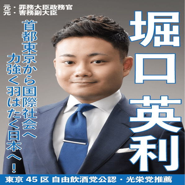 堀口英利くんは 2021年及び2022年の10月にハロウィンのネタとして、架空の選挙の候補者ポスターを作成し、大臣のコスプレをおこない、その様子を投稿している。