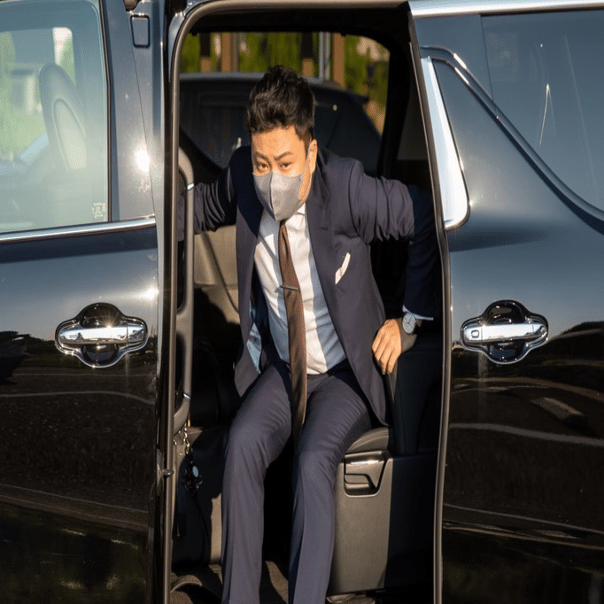 車から大臣が降りるシーン