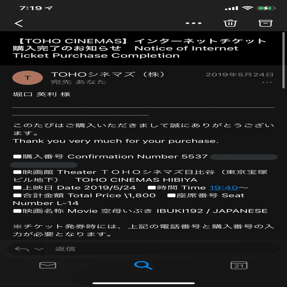 堀口くんは公開初日に鑑賞した、とチケット購入時のスクリーンショットの証明付きで投稿している。