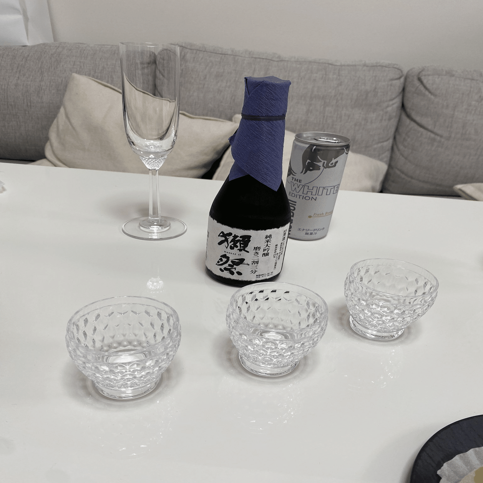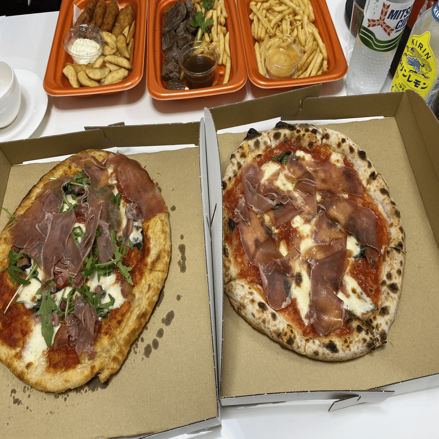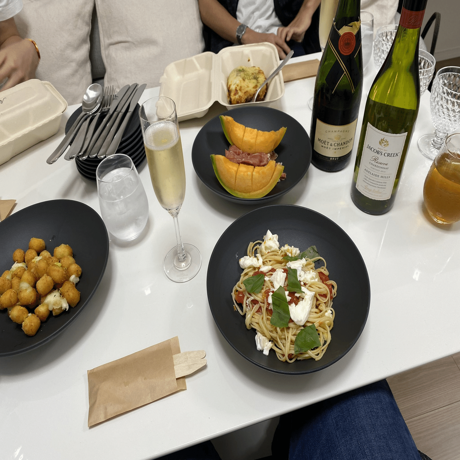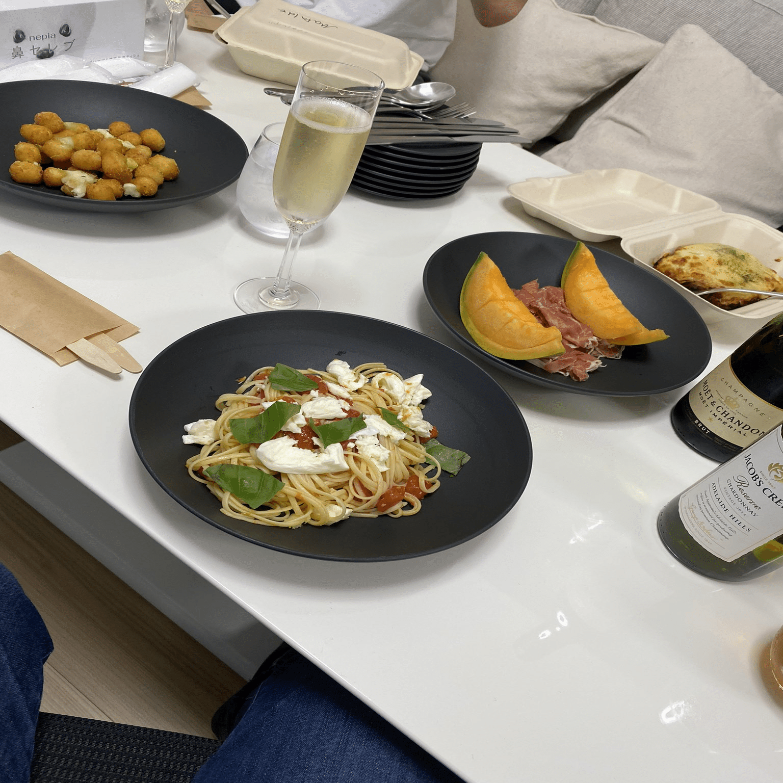 Uber Eatsではあるが、 生ハムメロンとシャンペンに獺祭。前回5月20日のピザよりもつまみのグレードが上がっている。