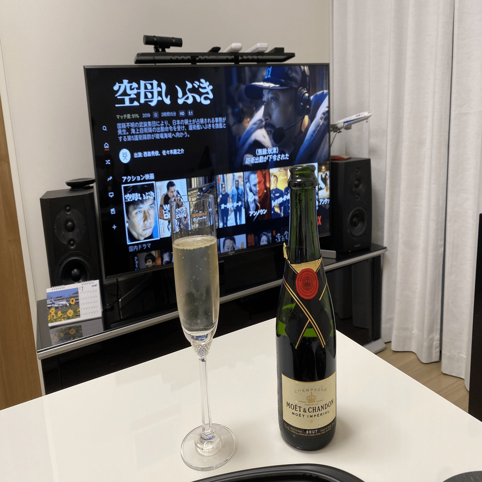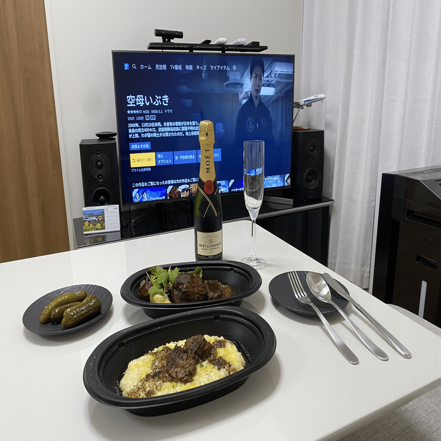 友人たちと自宅で一緒にピザを食べていたら、 どういうわけか映画『空母いぶき』鑑賞会が始まってしまいました。