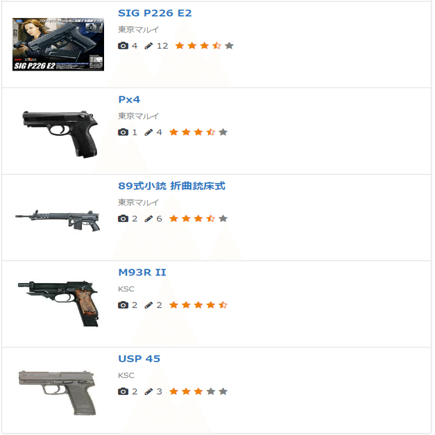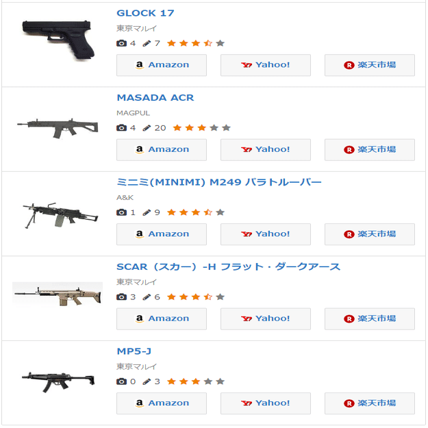 RyanCooper は欲しい装備として13件のエアソフトガンをリストに挙げている。