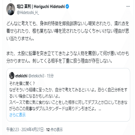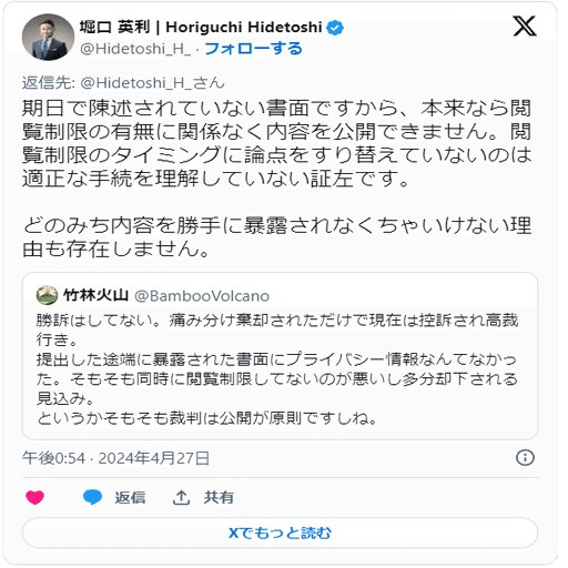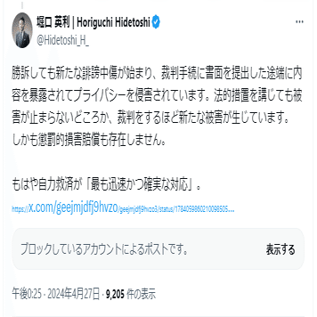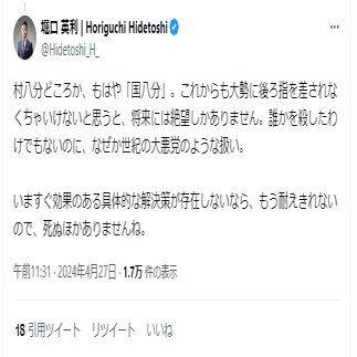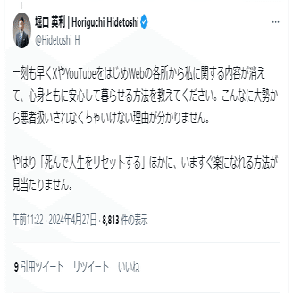 堀口英利 の殺害予告X投稿 2024年4月27日
