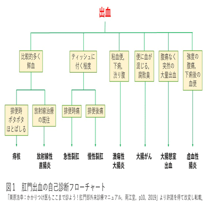 一例として日本大腸肛門病学会の自己診断フローチャートを紹介する。