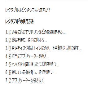 レクタブルの使用方法として、「必要に応じてワセリンなどの潤滑剤を塗る」とされている。
