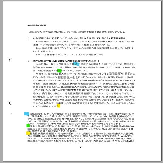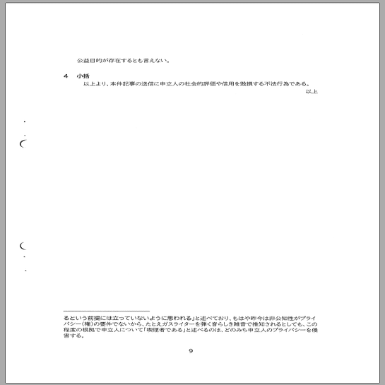 この申立書では6~9ページの4ページにわたり脚注途中で改ページされて、脚注が分断された状態となっている。