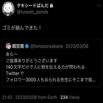 「パニック」になったのは間接強制食らった時とタキシードぱんだの中身が「堀口英利」として振る舞い「堀口英利」でしか投稿できないような誰がどうみても同一人物と認知可能な暴露をされて言い訳出来ない時だっけ🤔 pic.twitter.com/bbT2XSfxFb