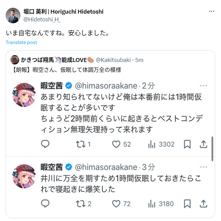 堀口が投稿したツイート
