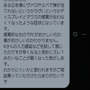 ゲーム内での感度が壊れている気がする(すぐに感度の微調節したくなる不安定さ)
