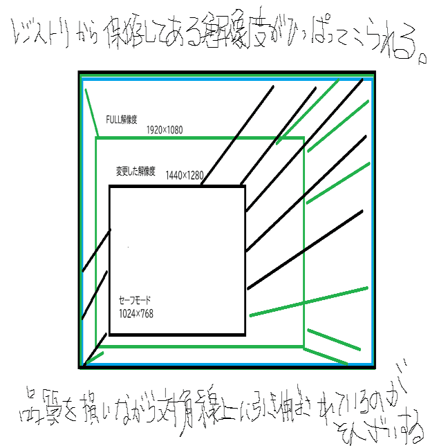 PCの再起動、モニターのスリープモード移行、あるいはモニターの再起動時に、これらの「壊れた解像度」がシステムによって誤って適用され、それがシステムの不安定性や画像の劣化、感度の破損を引き起こすと推測。