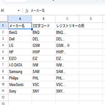 この3文字コードは、モニター自身が持っているEDID(Extended Display Identification Data)という自己紹介データの中に含まれているメーカーIDです。PCはこの情報を読み取って、「ああ、BenQのモニターが繋がったな」というように識別しています(ドライバがない時なども)