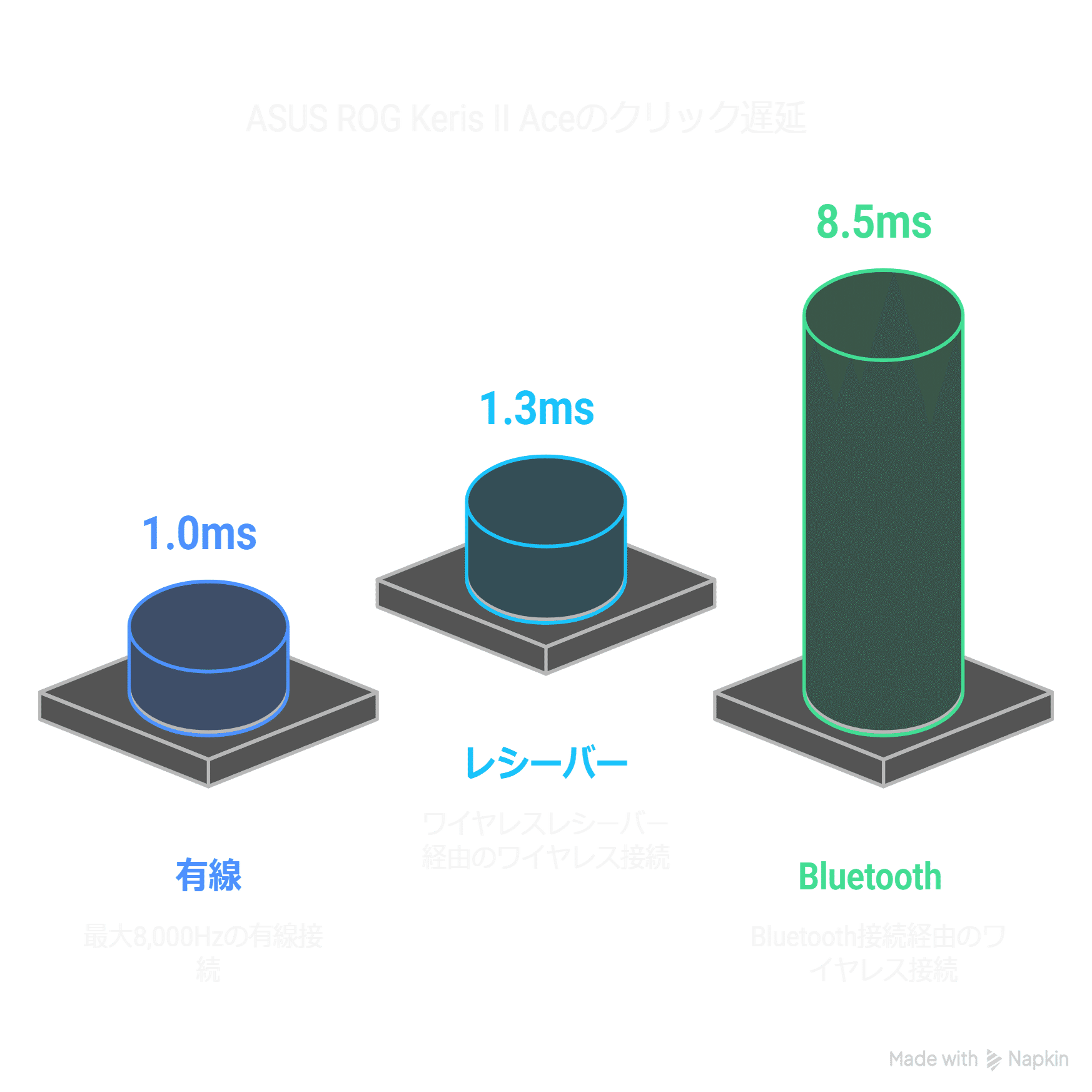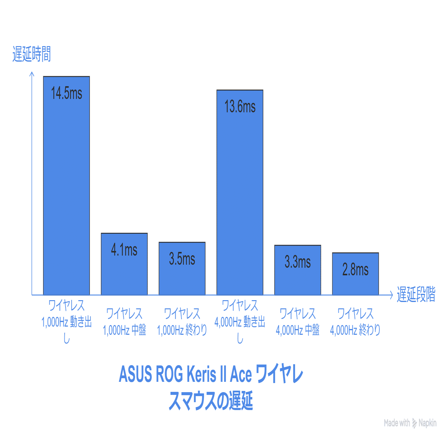 ASUS ROG Keris II Aceのクリック遅延は以下の通りです。