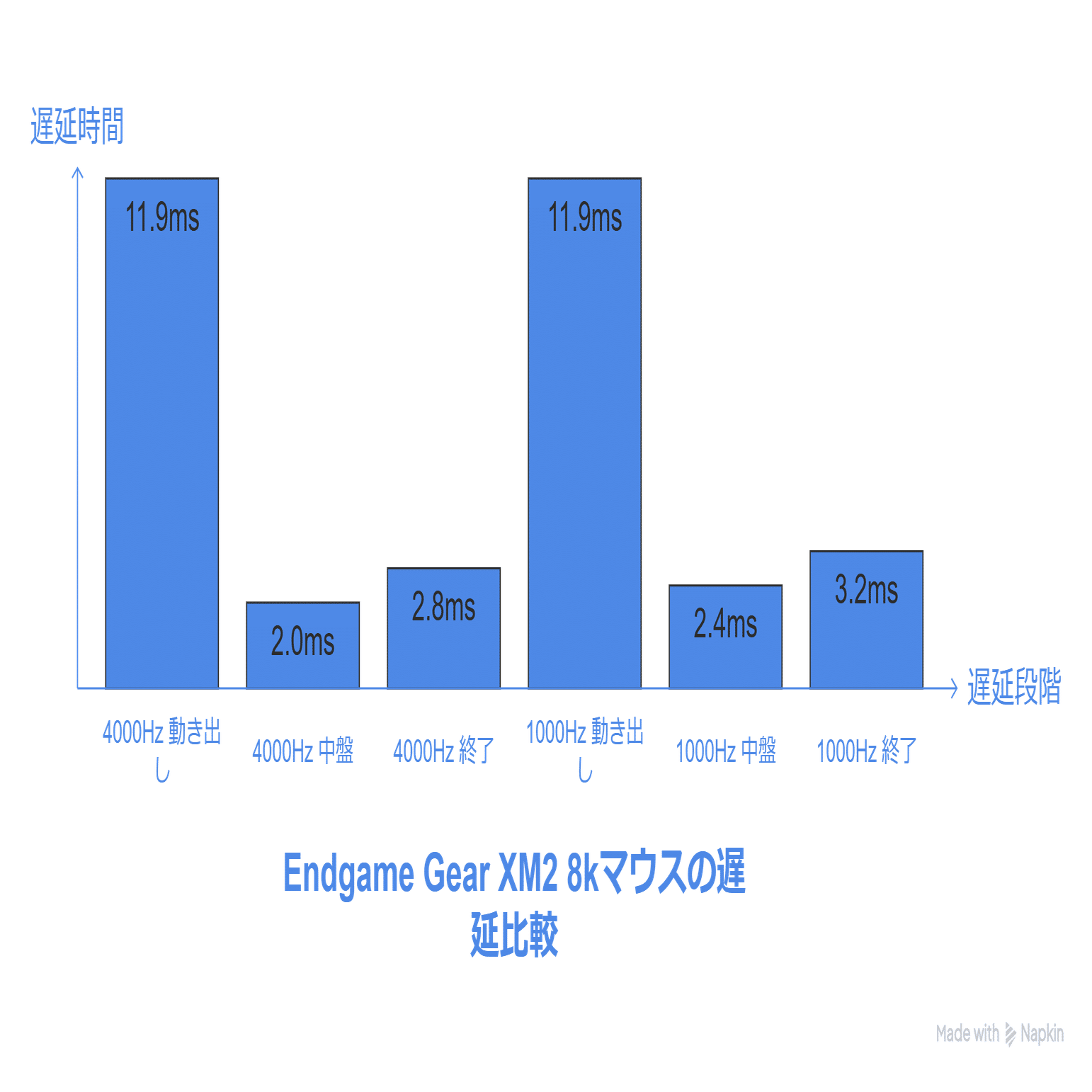 テスト条件: ワイヤレス 8,000Hz、モーションシンクオフ、コンペティティブモードオン