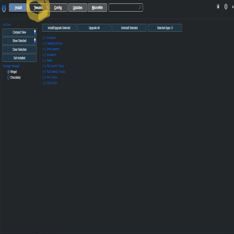 Chris TitusさんのWindows Utility最適化です。事前にダウンロードなども不要です。