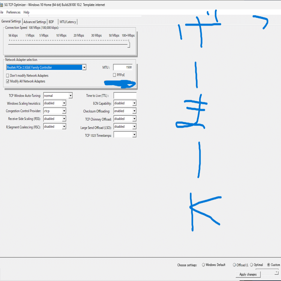 注目すべきはCongestion control provierです。最近のPC初期値はCubicかと思います。俺はCTCPに変更設定していますし、このソフトを解説している方の大多数は同じ答えだと思います。ただ状況によっては異なる場合があります(家でオンラインゲームする人なら99パーセントCTCPになるw)