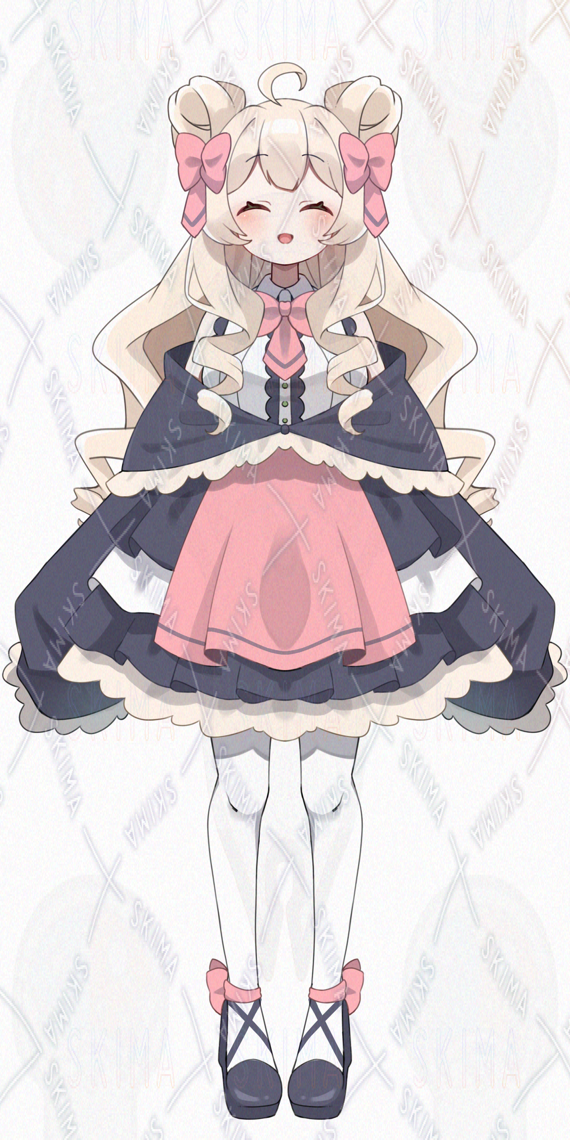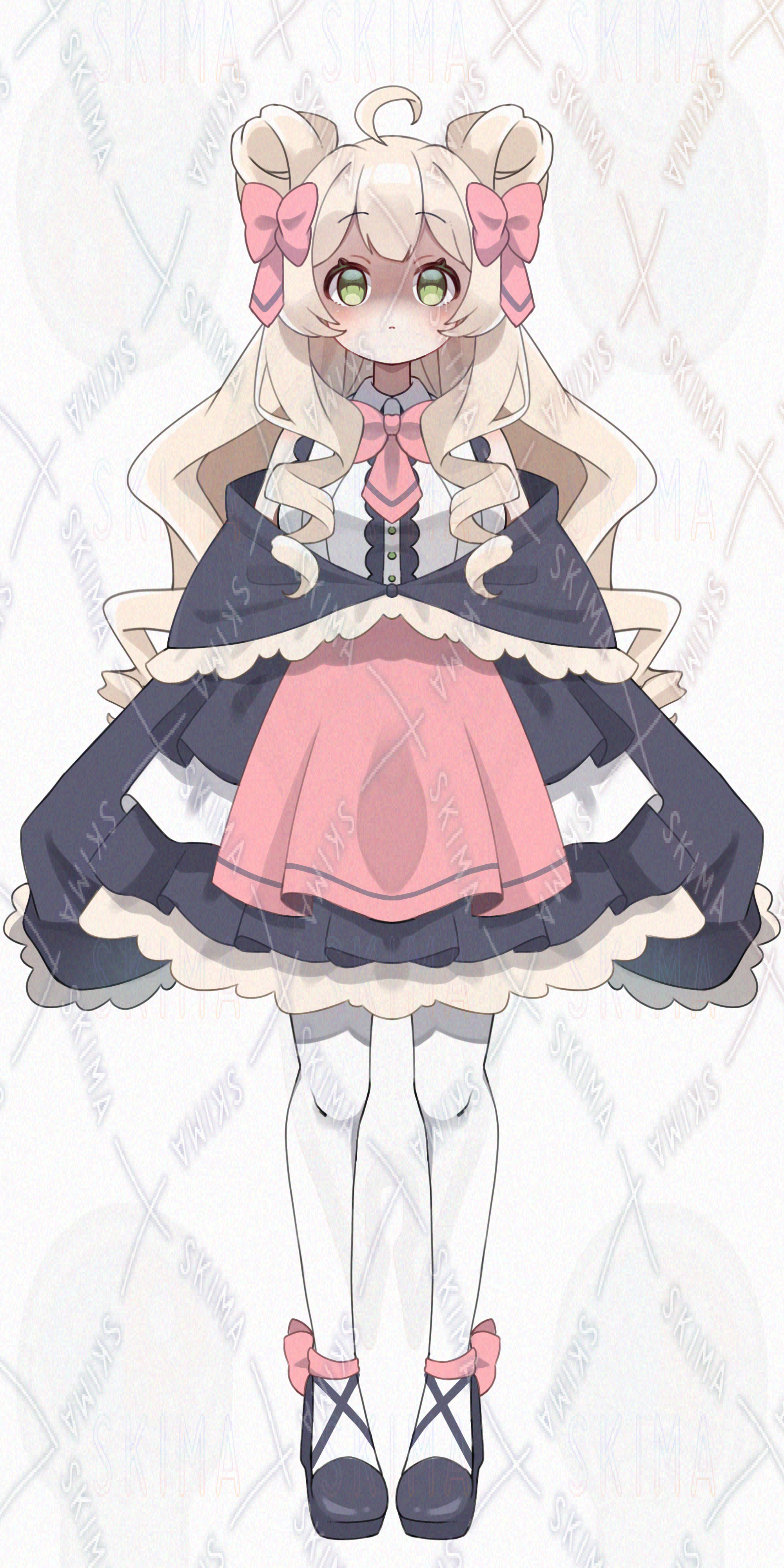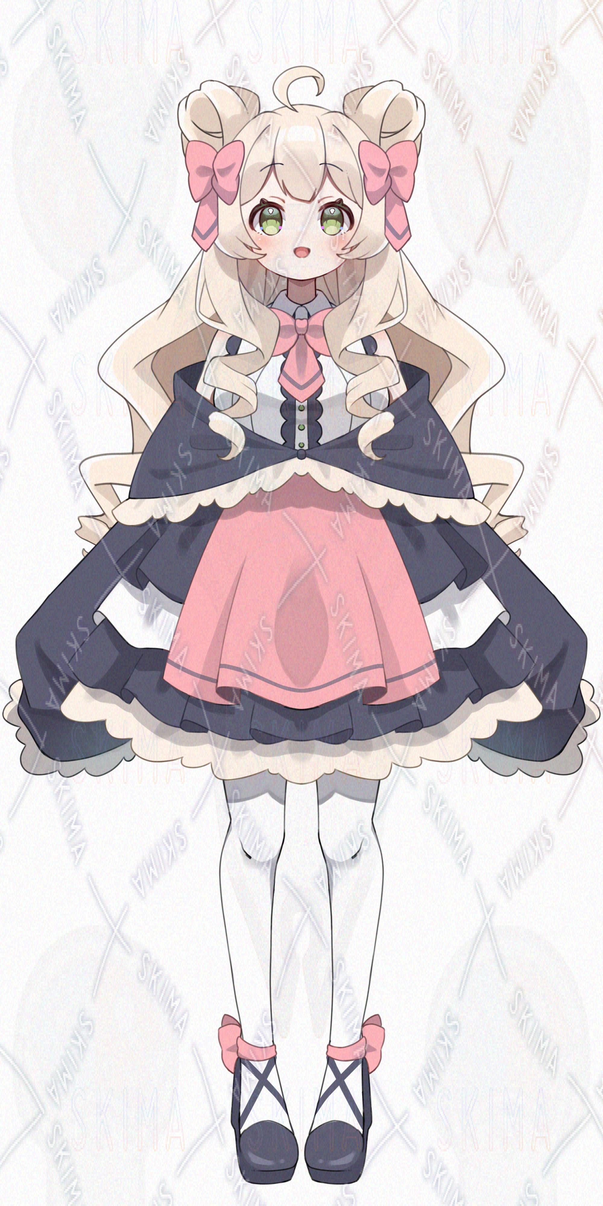 女の子/立ち絵/かわいい/お嬢様/お団子/ピンク/リボン