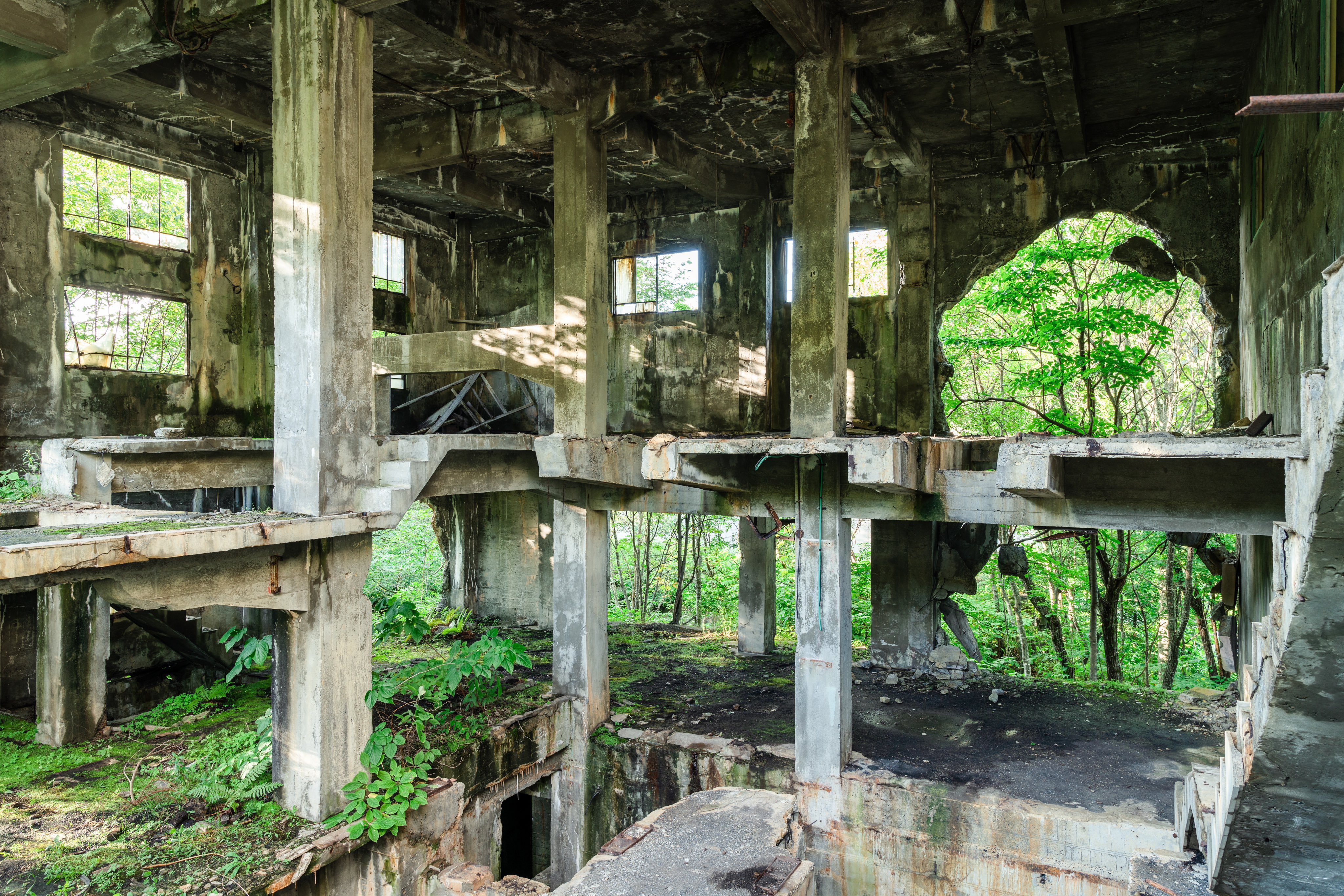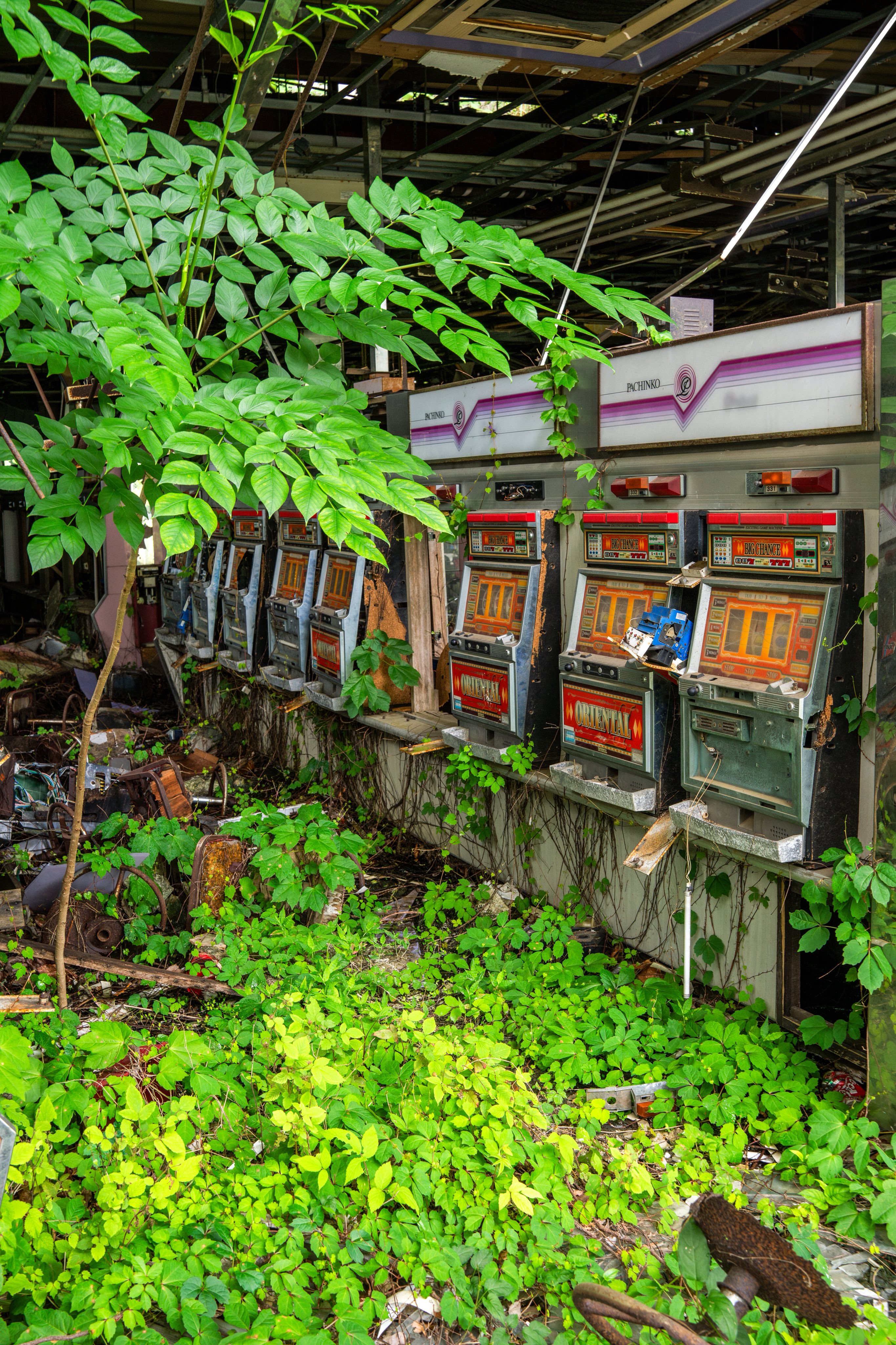 放置されたパチンコ屋、想像以上にジャングル化しててすごかった。30年くらいでこうなったらしい