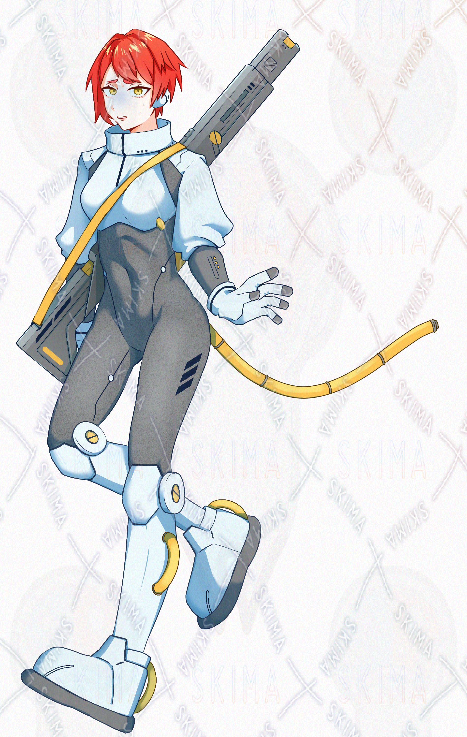 サイバーパンク風の宇宙服を着た女性です。