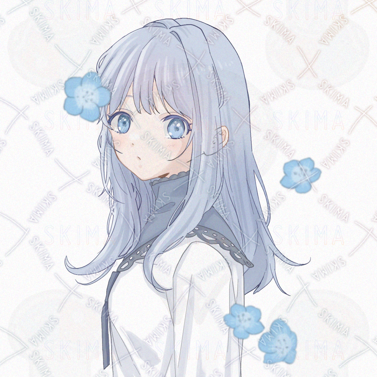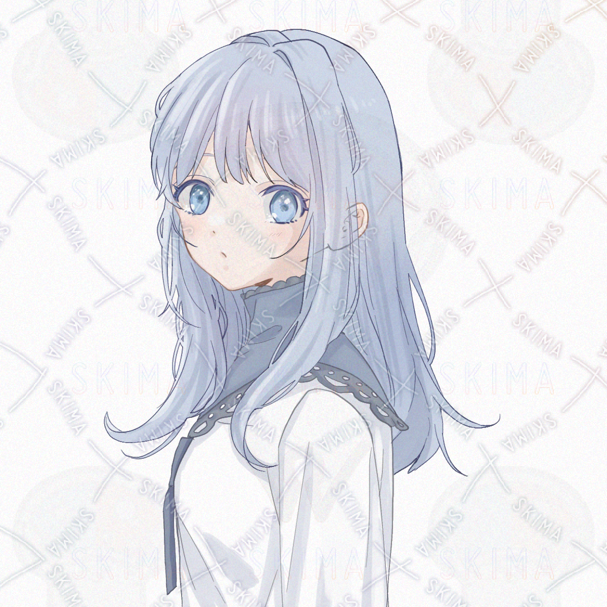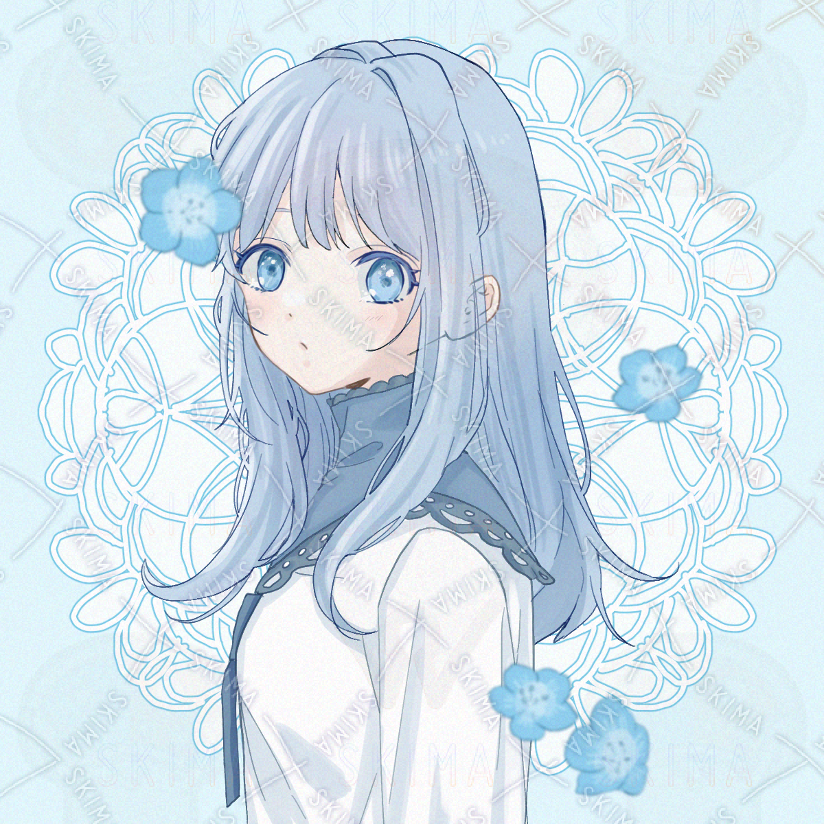 女の子、アイコン、バストアップ、ロングヘア、水色