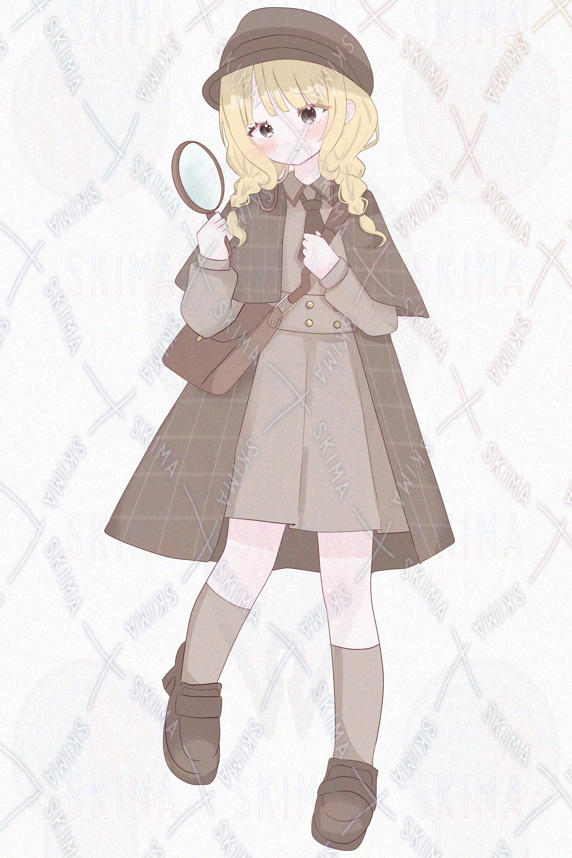 金髪、茶色、帽子、ワンピース、ケープ、虫眼鏡、探偵、かわいい、女の子
