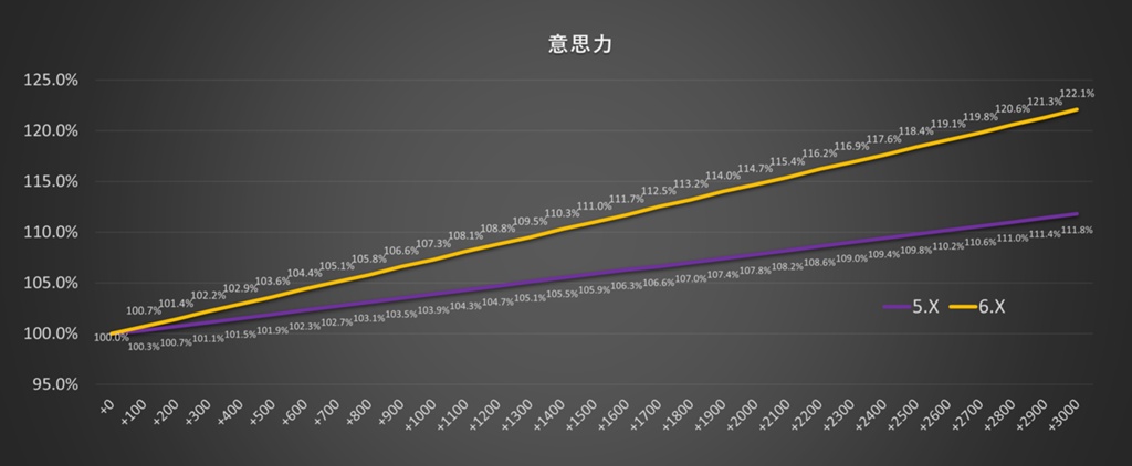 意思力の与ダメージへの影響力が上昇しました。