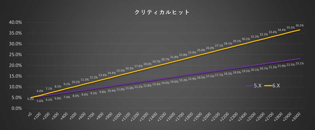 サブステータス量が調整された結果、計算式にも変更が入りました。