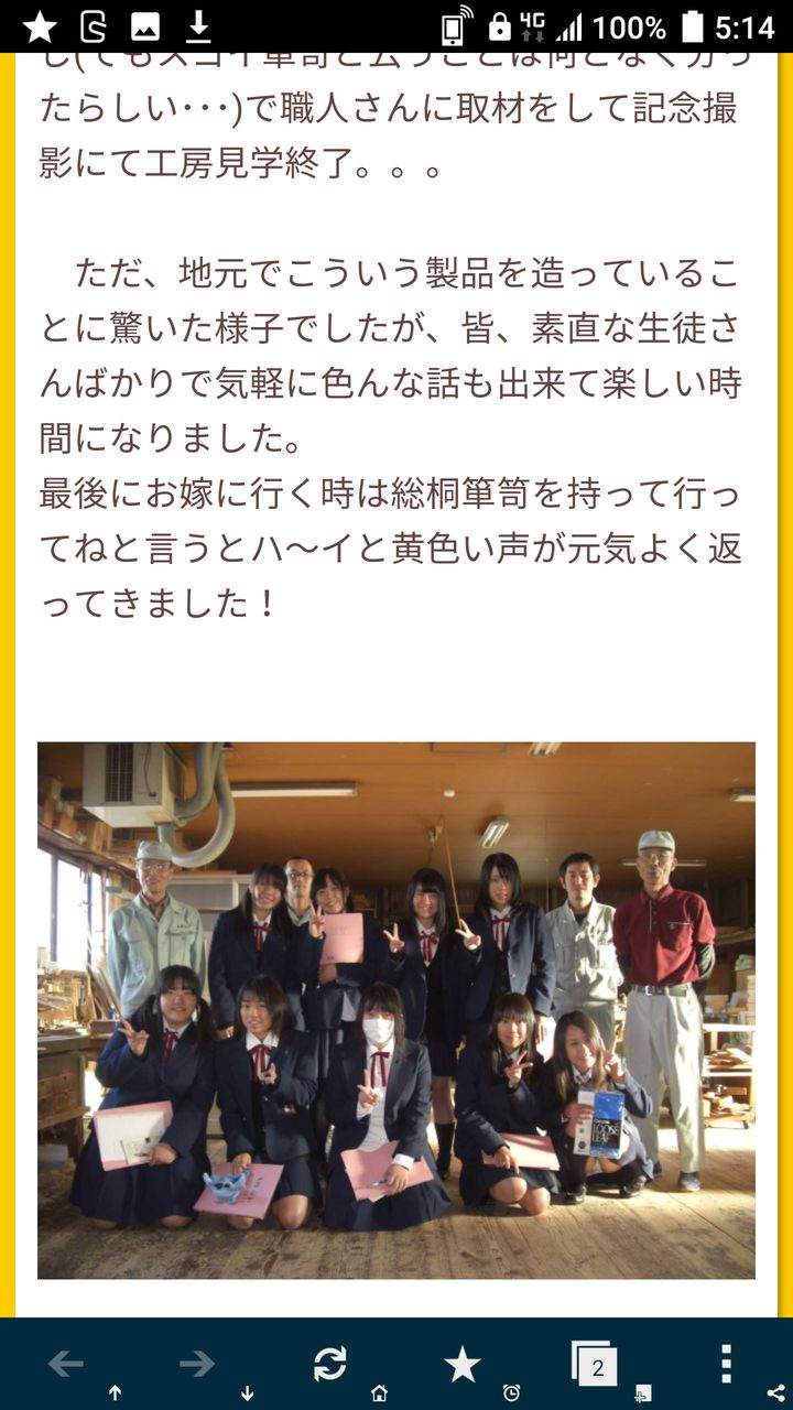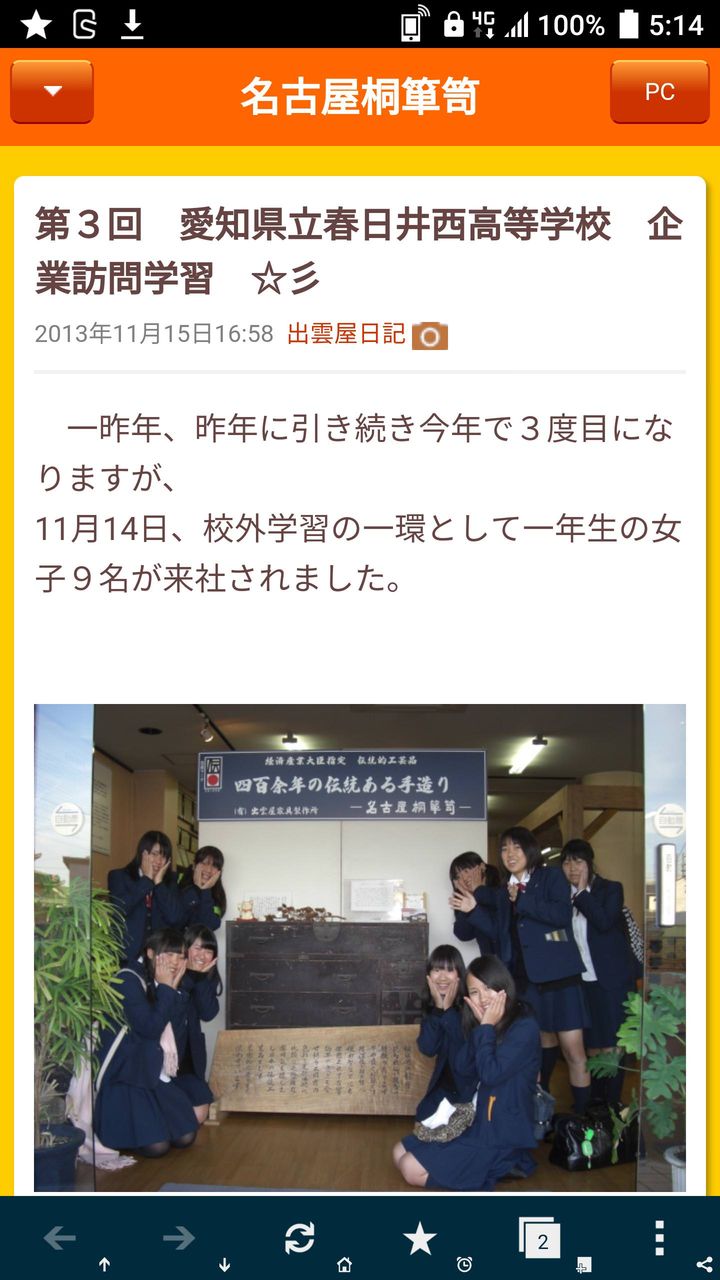 11月14日、校外学習の一環として一年生の女子9名が来社されました。