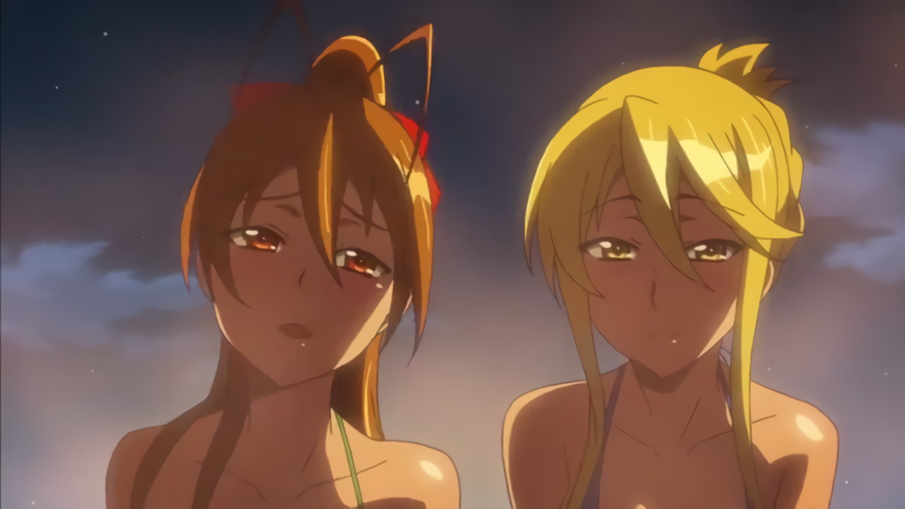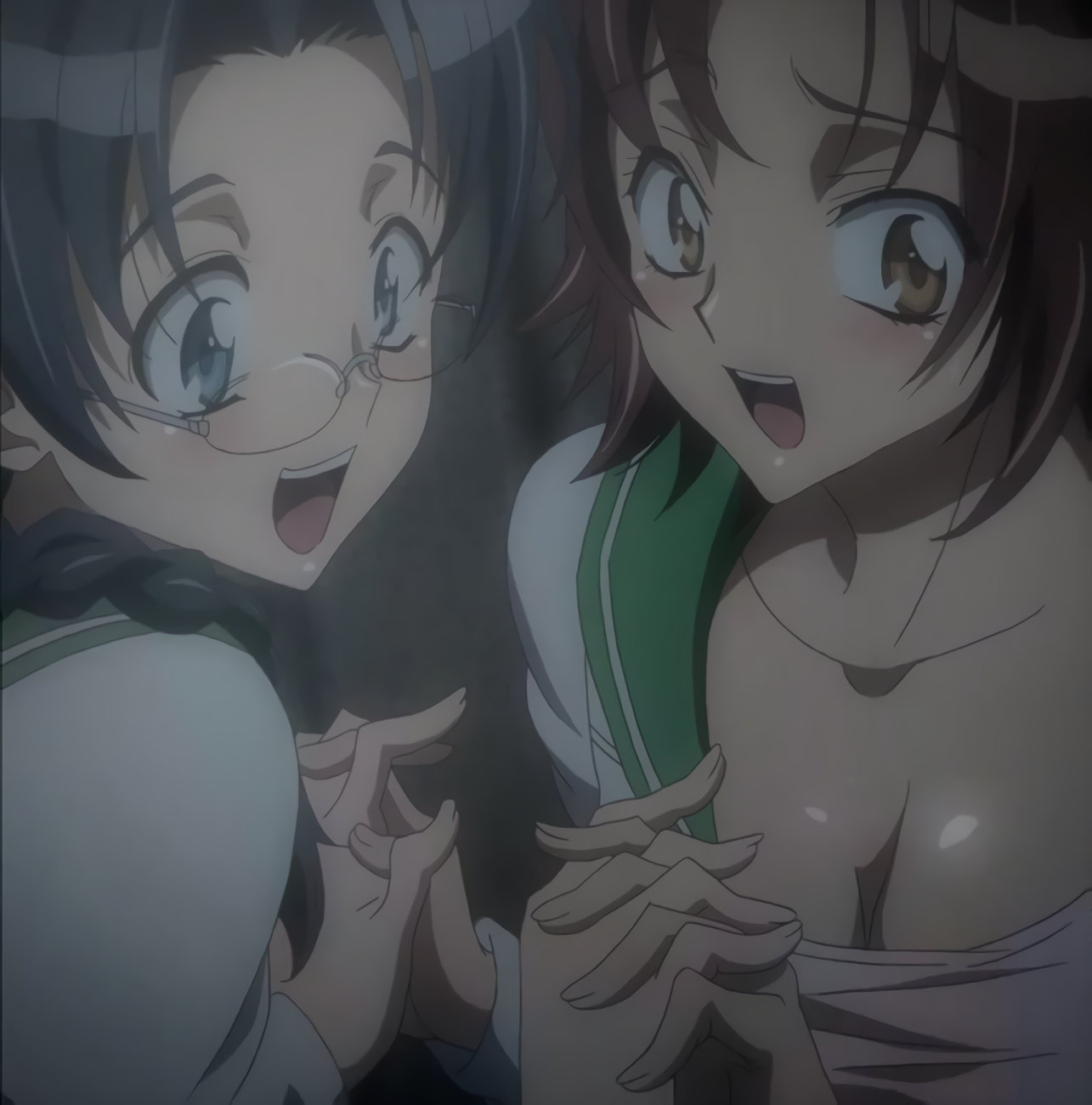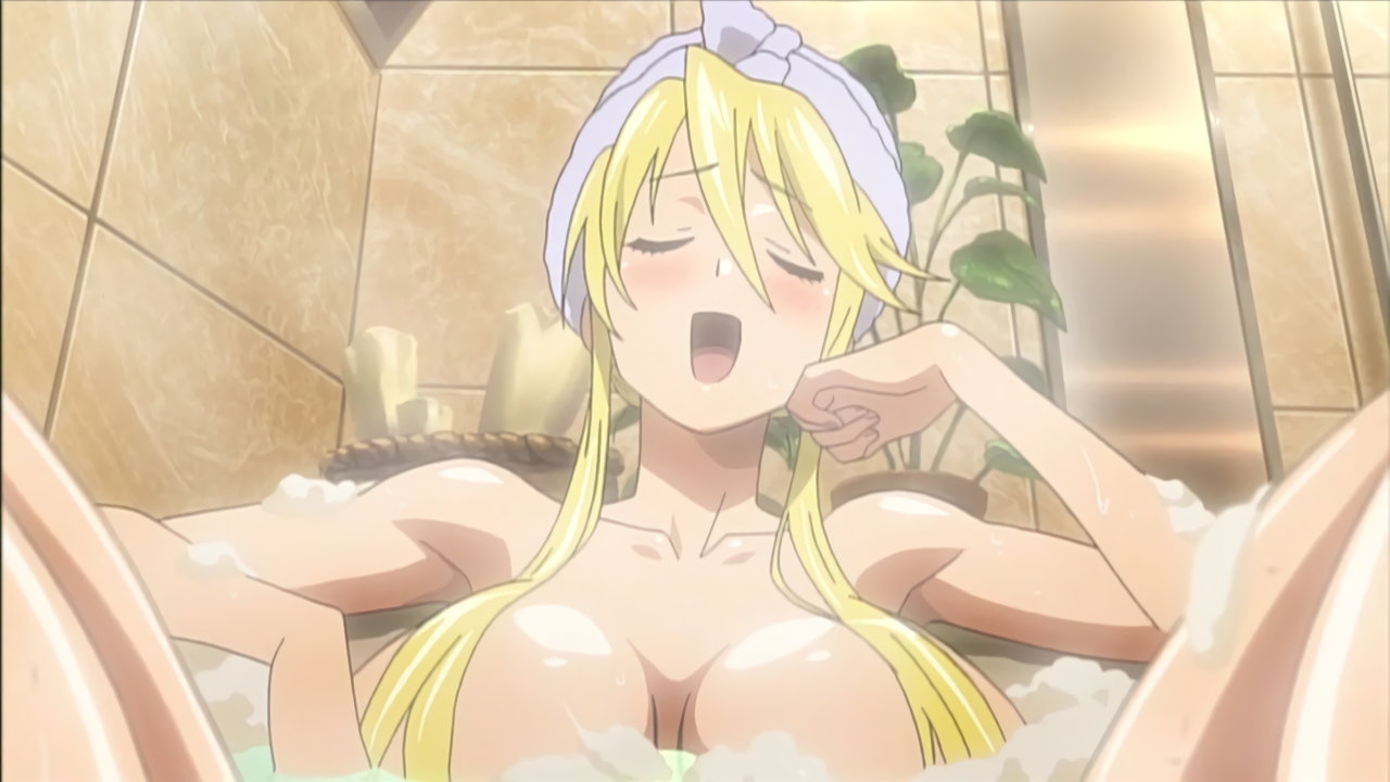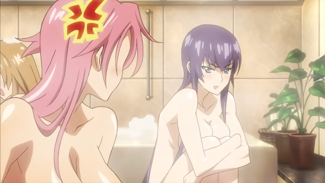 湯船に浸かる静香および麗。