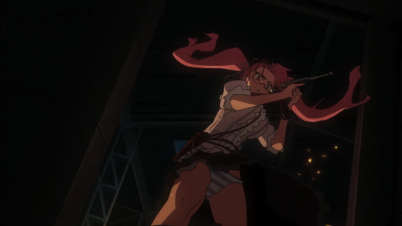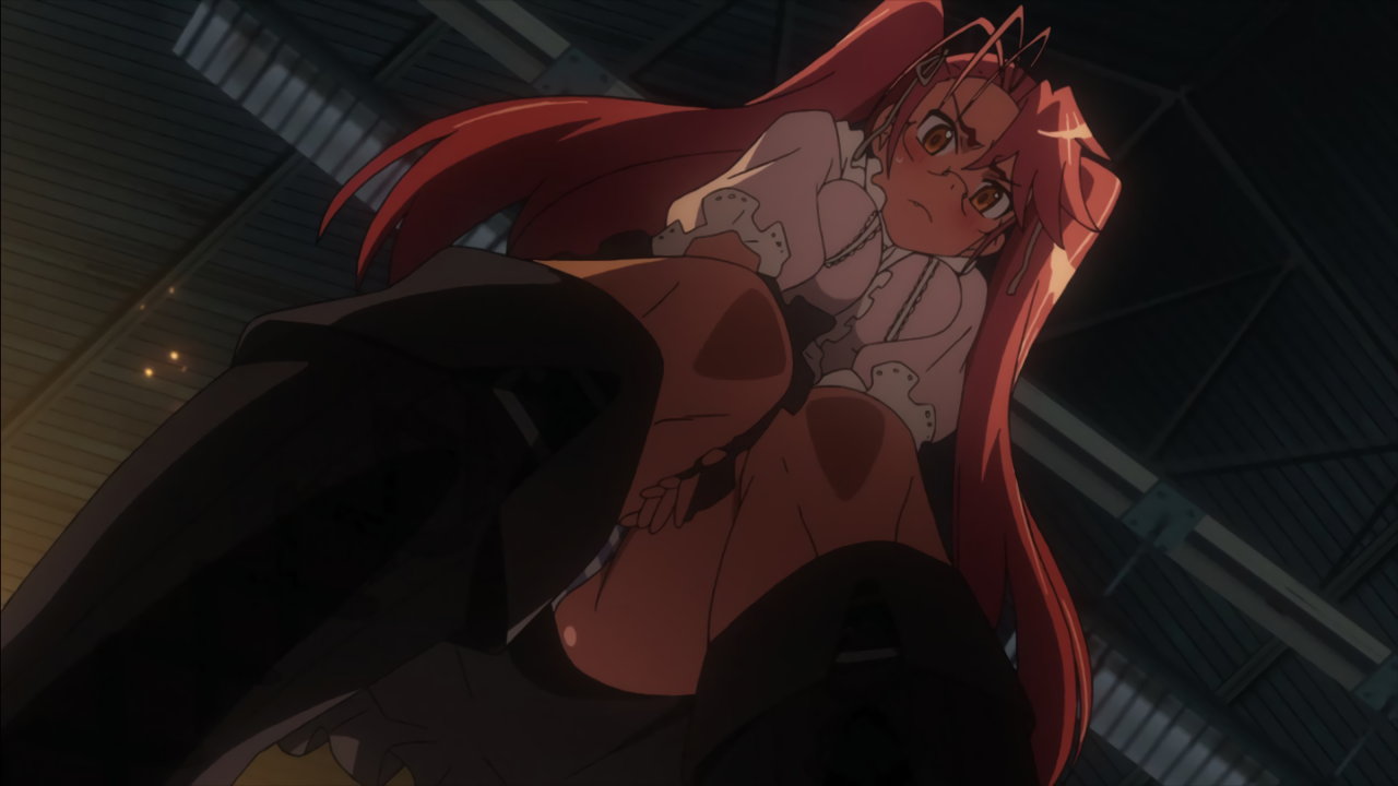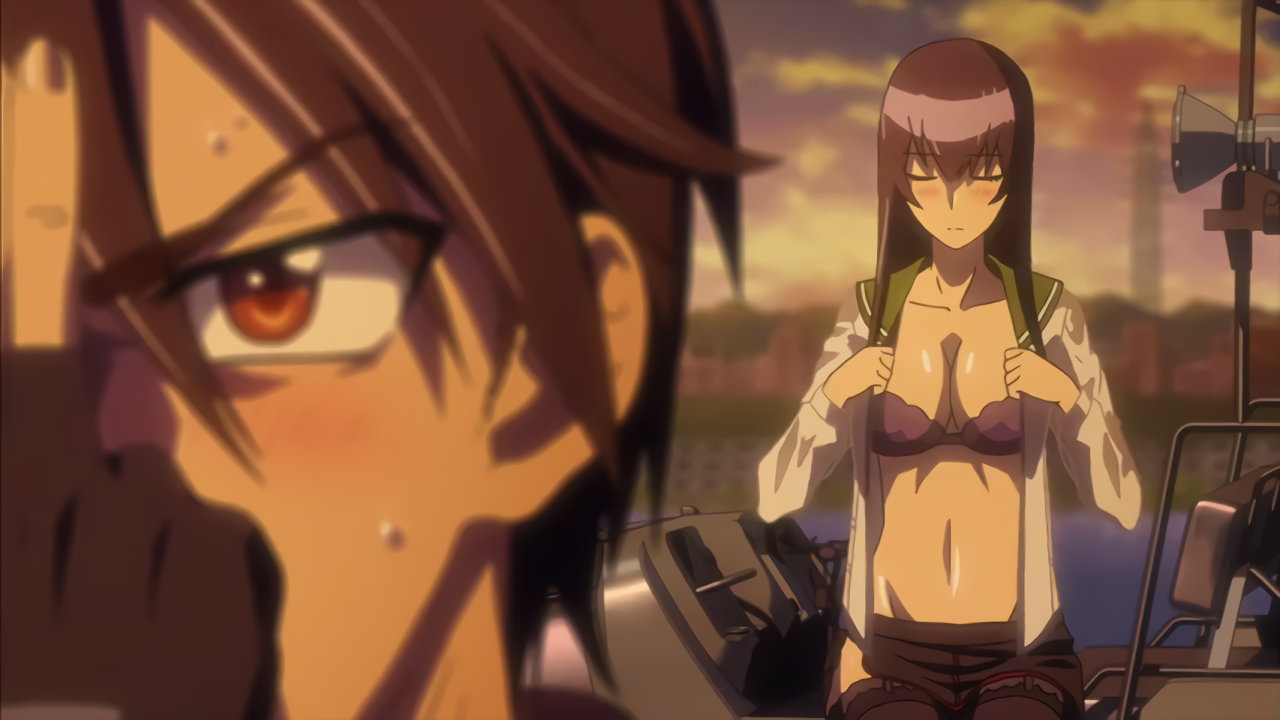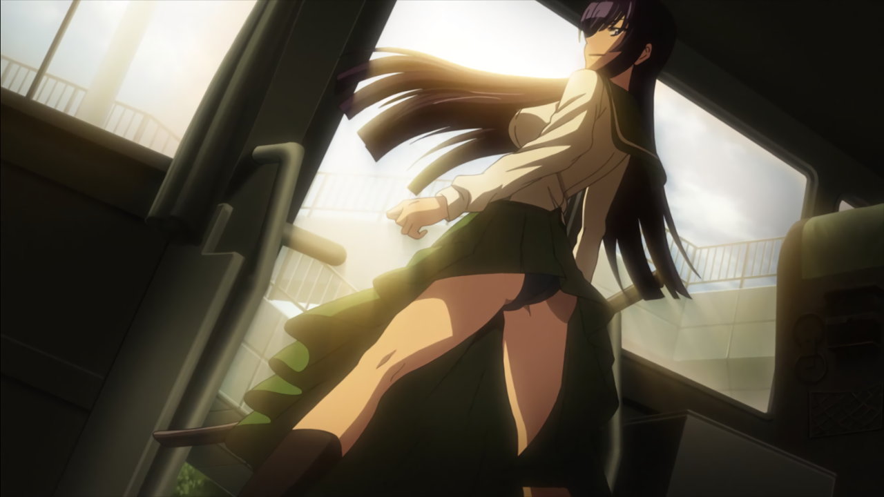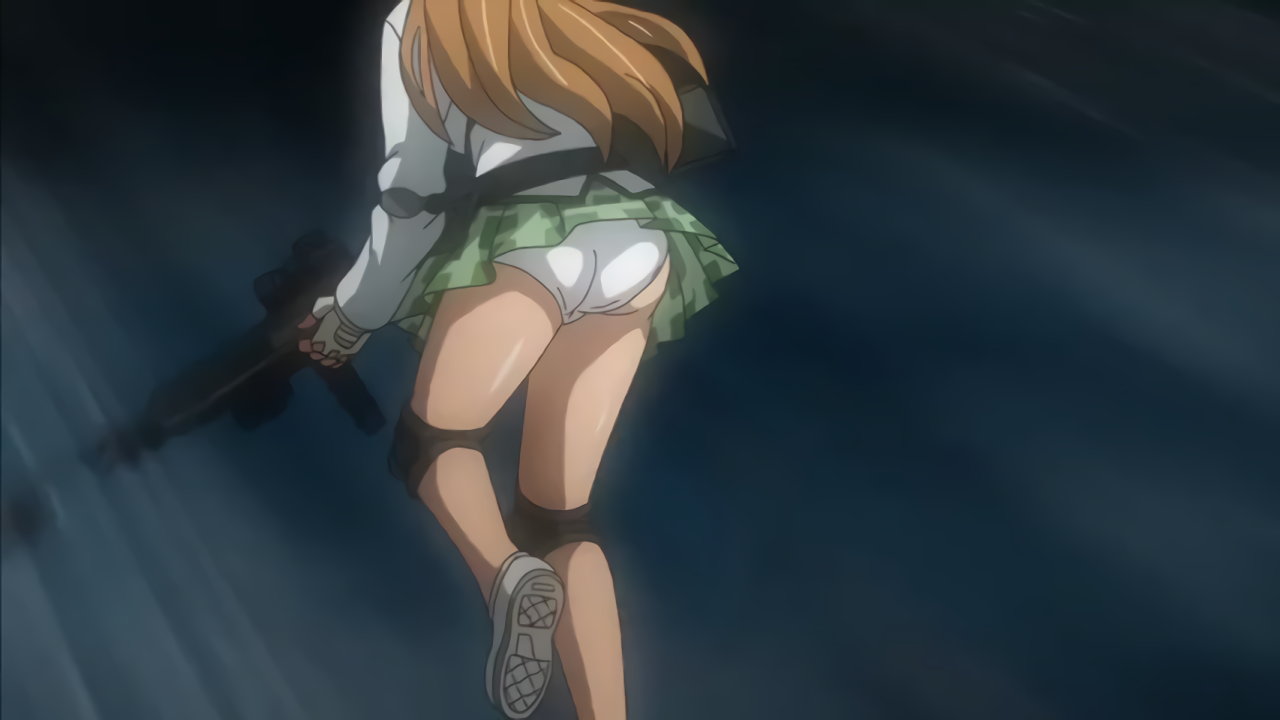 銃を持ちながらパンチラする沙耶。
