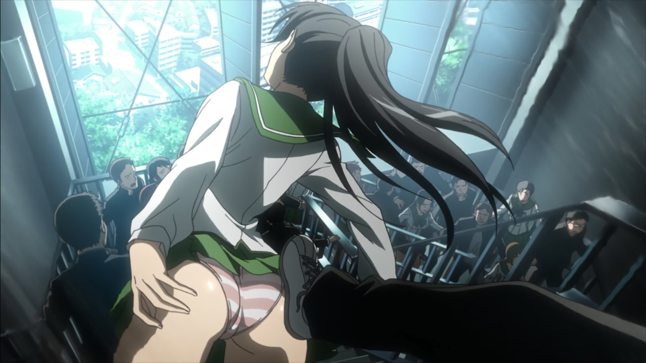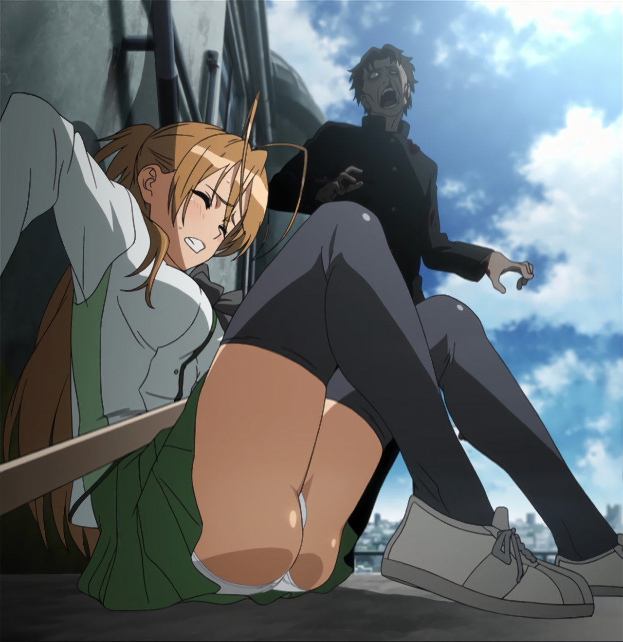 ゾンビに襲われる女子生徒たちのパンチラシーン。