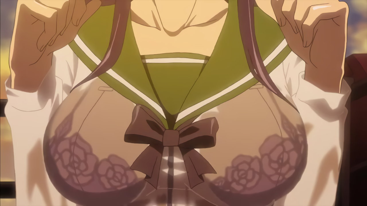 胸の谷間を見せる、巨乳女子生徒たち。