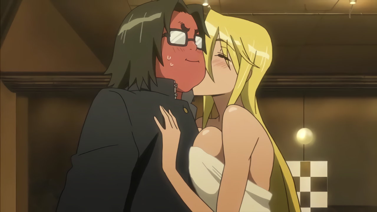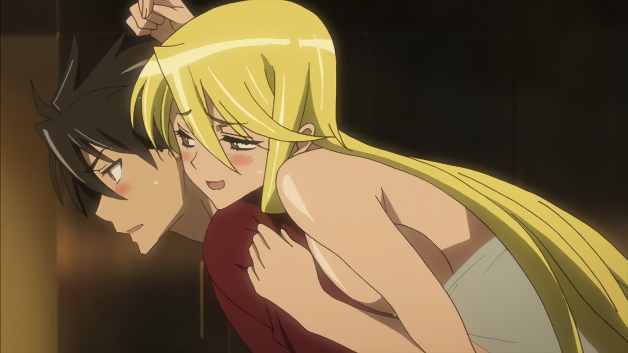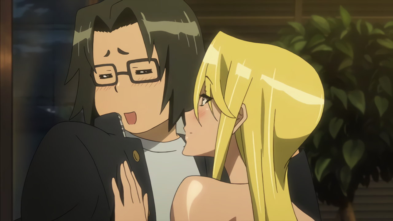 沙耶の胸の谷間を目撃し、目を逸らす孝。