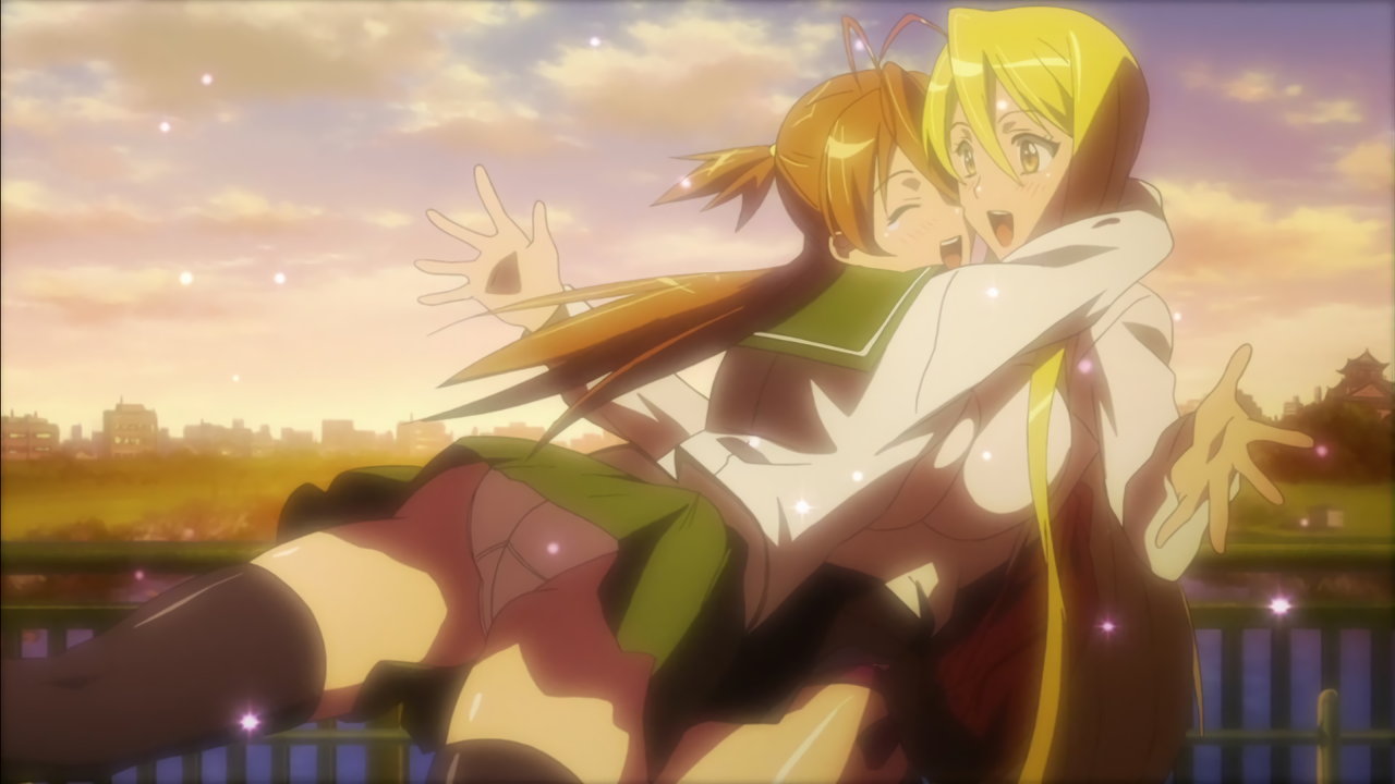 パンチラしながら静香に抱きつく麗。