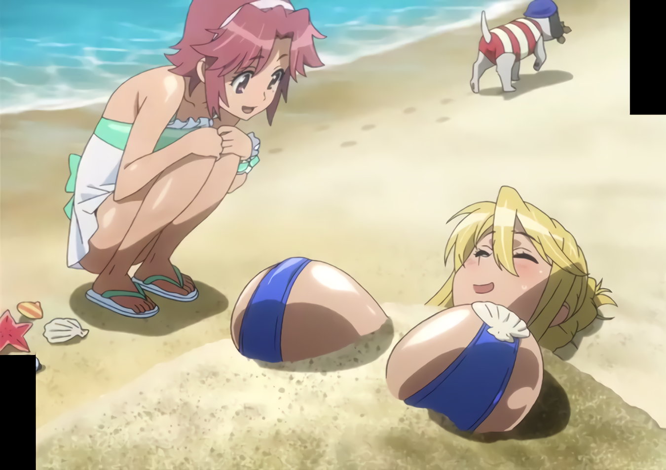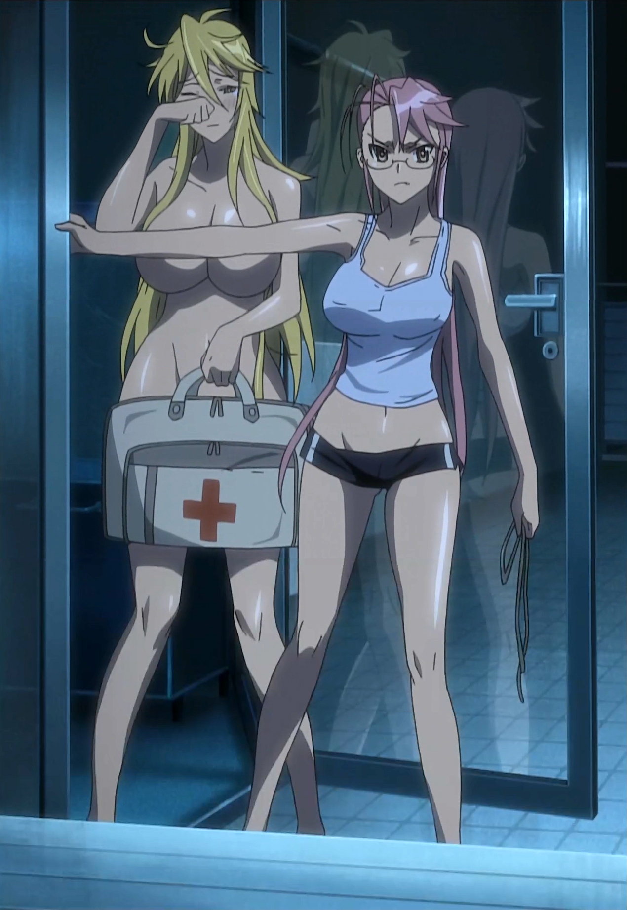 全裸に救急バッグの静香と、タンクトップに超ローライズ短パンの沙耶。