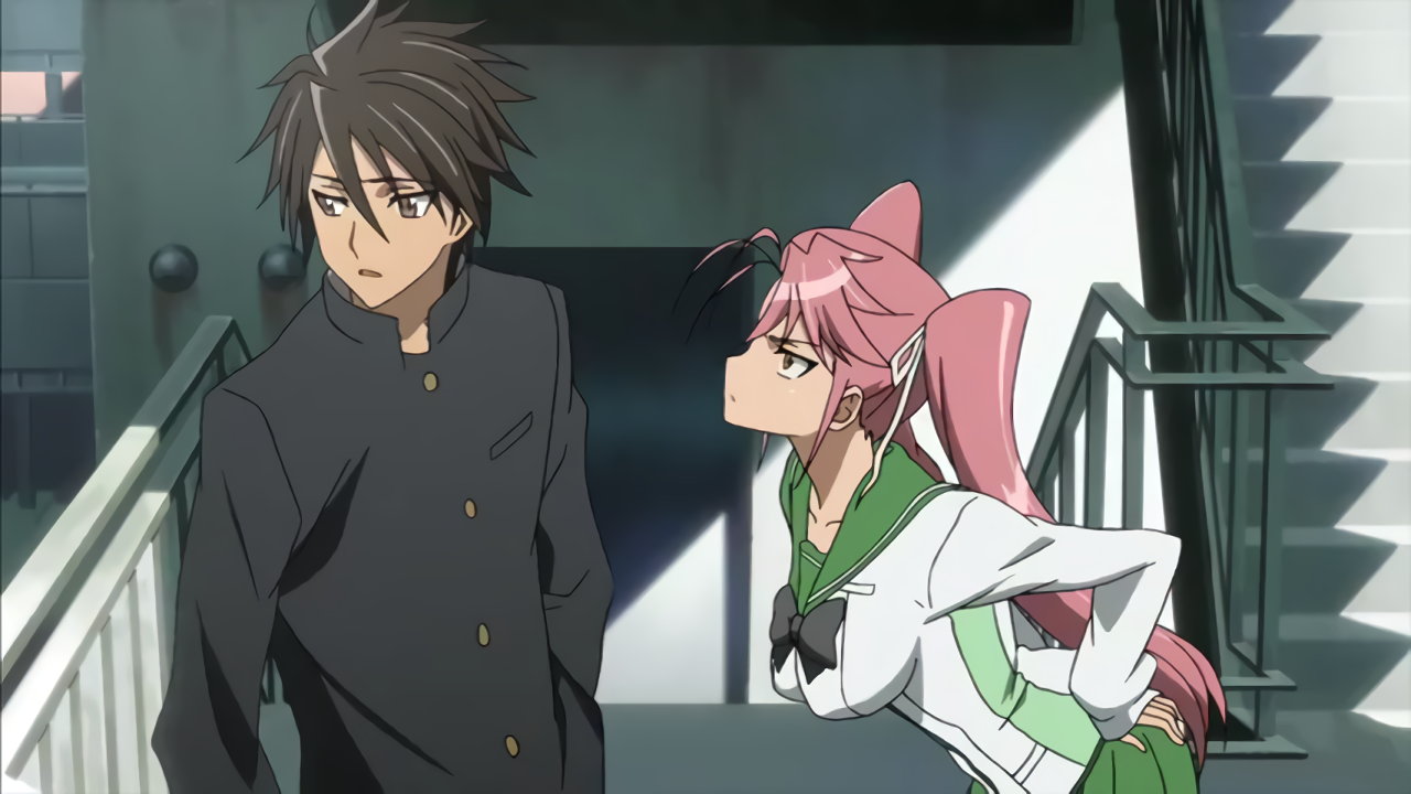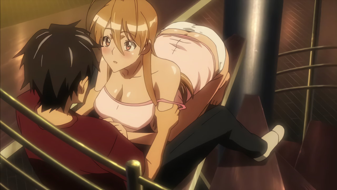 階段にて見つめ合い、発情中の孝と麗。