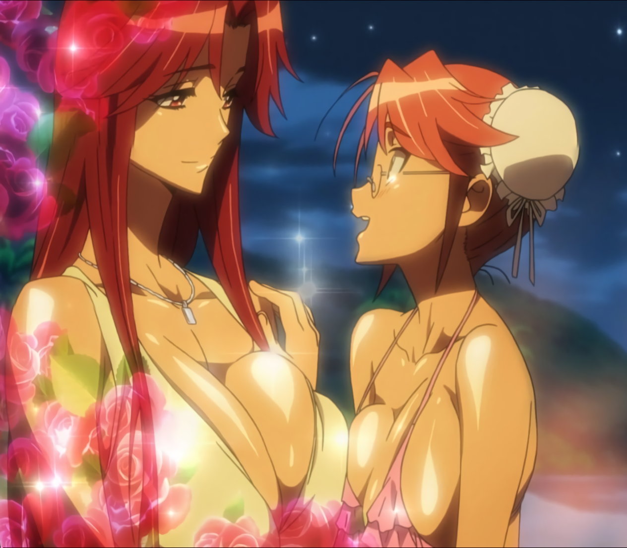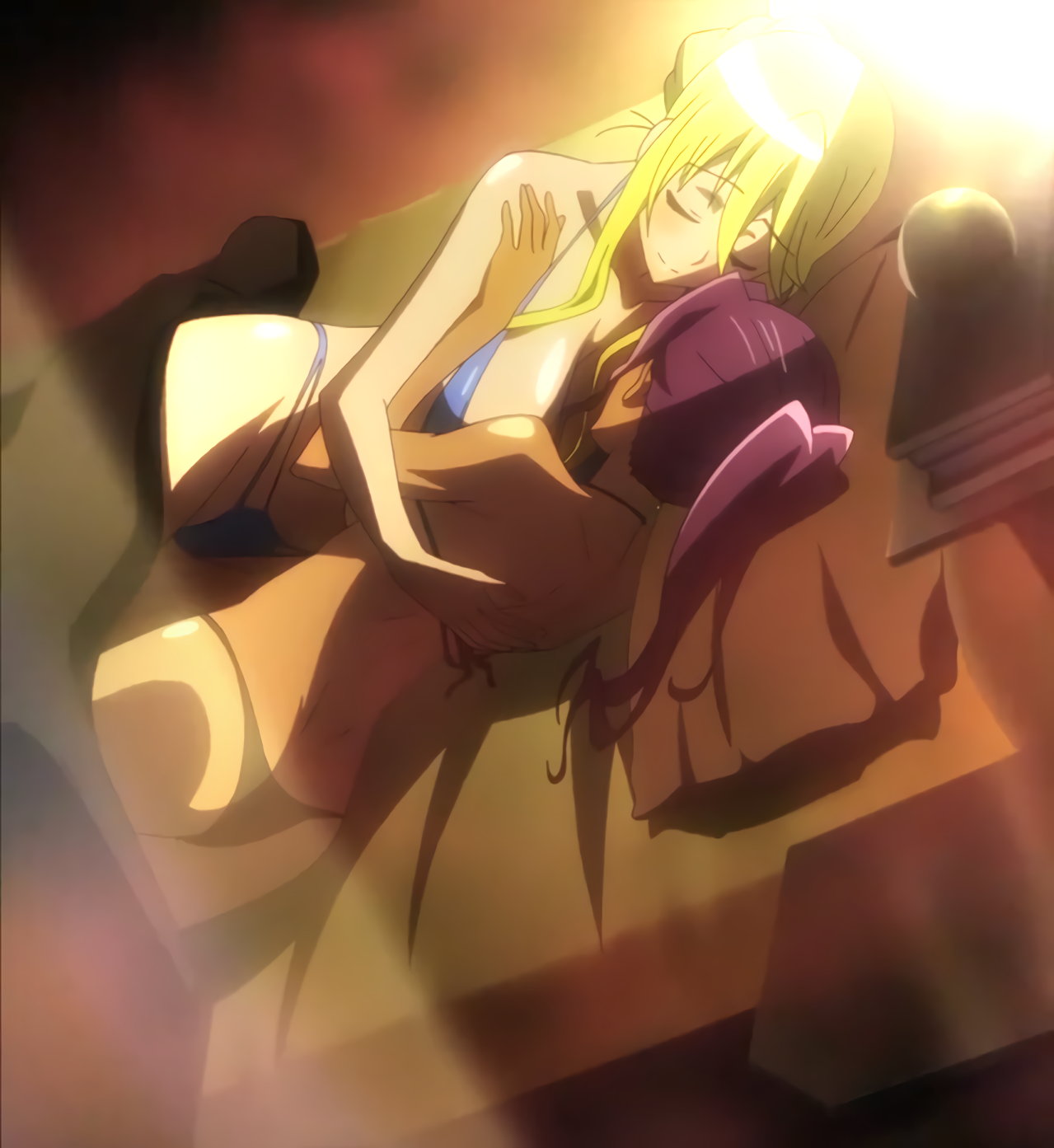 胸の谷間を見せながら眠る、静香および沙耶。