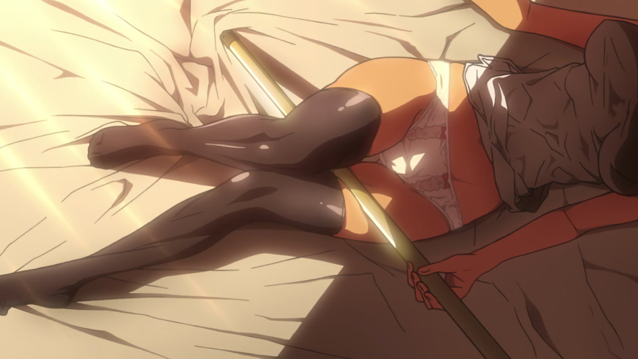 パンツ丸見えの冴子の股間を潜り抜ける銃弾。