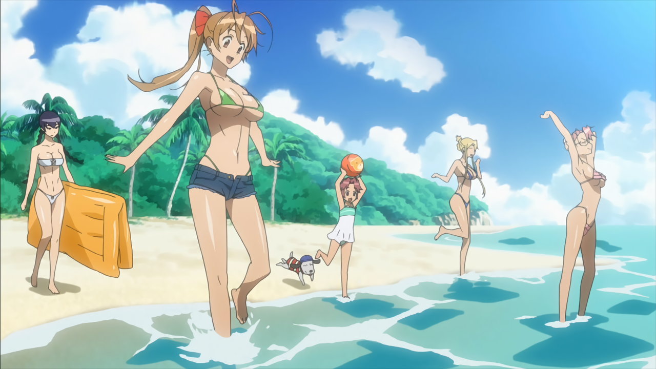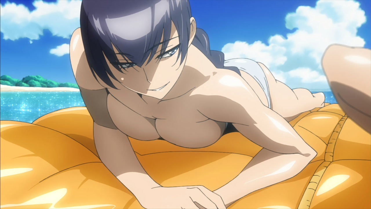 漂着した南の島にて、水着姿になる沙耶、冴子、麗、静香、ありす。